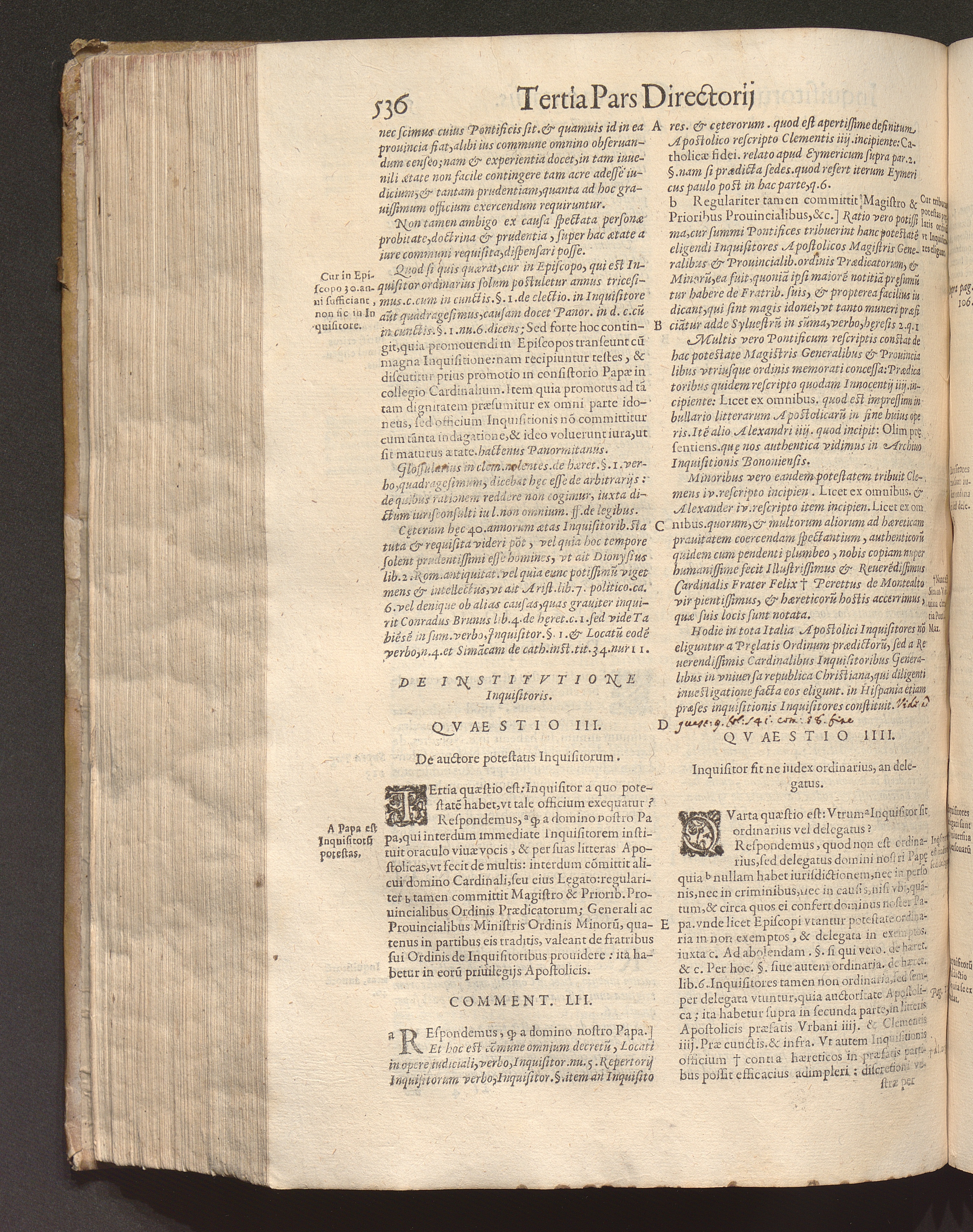 Directorivm Inqvisitorvm F. Nicolai Eymerici Ordinis Prædicatorum : Cvm Commentariis Francisci Pegñe Sacr[a]e Theologiæ ac Iuris Vtriusque Doctoris ; Accessit Haeresvm, Rervm Et Verborvm multiplex, & copiosissimus Index