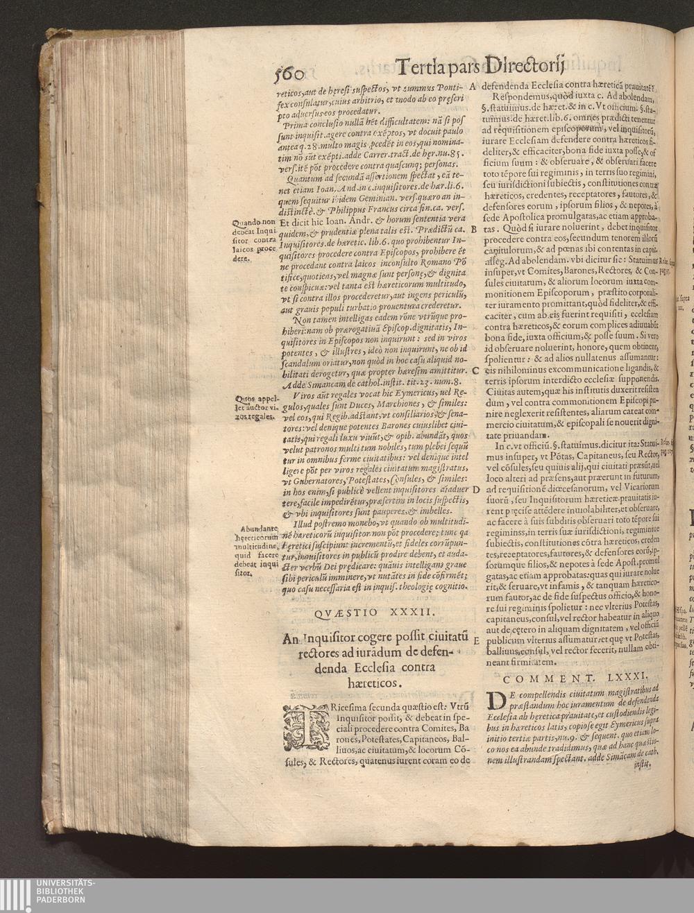 Directorivm Inqvisitorvm F. Nicolai Eymerici Ordinis Prædicatorum : Cvm Commentariis Francisci Pegñe Sacr[a]e Theologiæ ac Iuris Vtriusque Doctoris ; Accessit Haeresvm, Rervm Et Verborvm multiplex, & copiosissimus Index