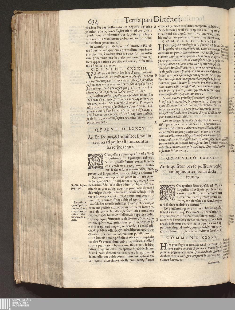 Directorivm Inqvisitorvm F. Nicolai Eymerici Ordinis Prædicatorum : Cvm Commentariis Francisci Pegñe Sacr[a]e Theologiæ ac Iuris Vtriusque Doctoris ; Accessit Haeresvm, Rervm Et Verborvm multiplex, & copiosissimus Index