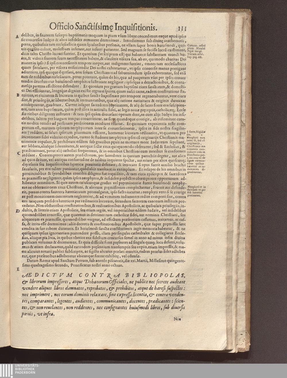 Directorivm Inqvisitorvm F. Nicolai Eymerici Ordinis Prædicatorum : Cvm Commentariis Francisci Pegñe Sacr[a]e Theologiæ ac Iuris Vtriusque Doctoris ; Accessit Haeresvm, Rervm Et Verborvm multiplex, & copiosissimus Index