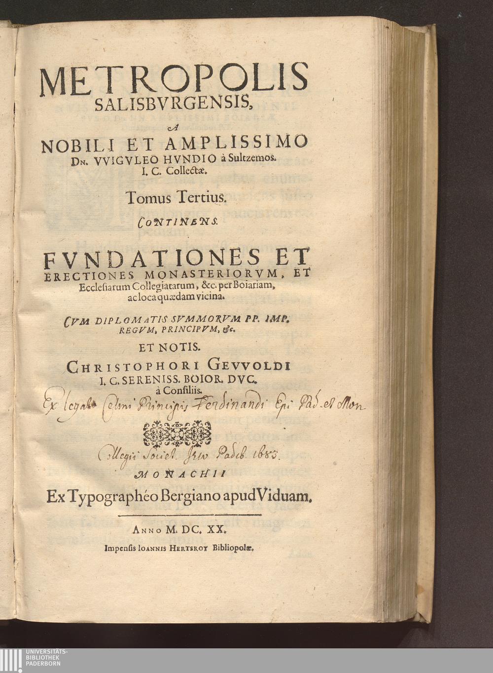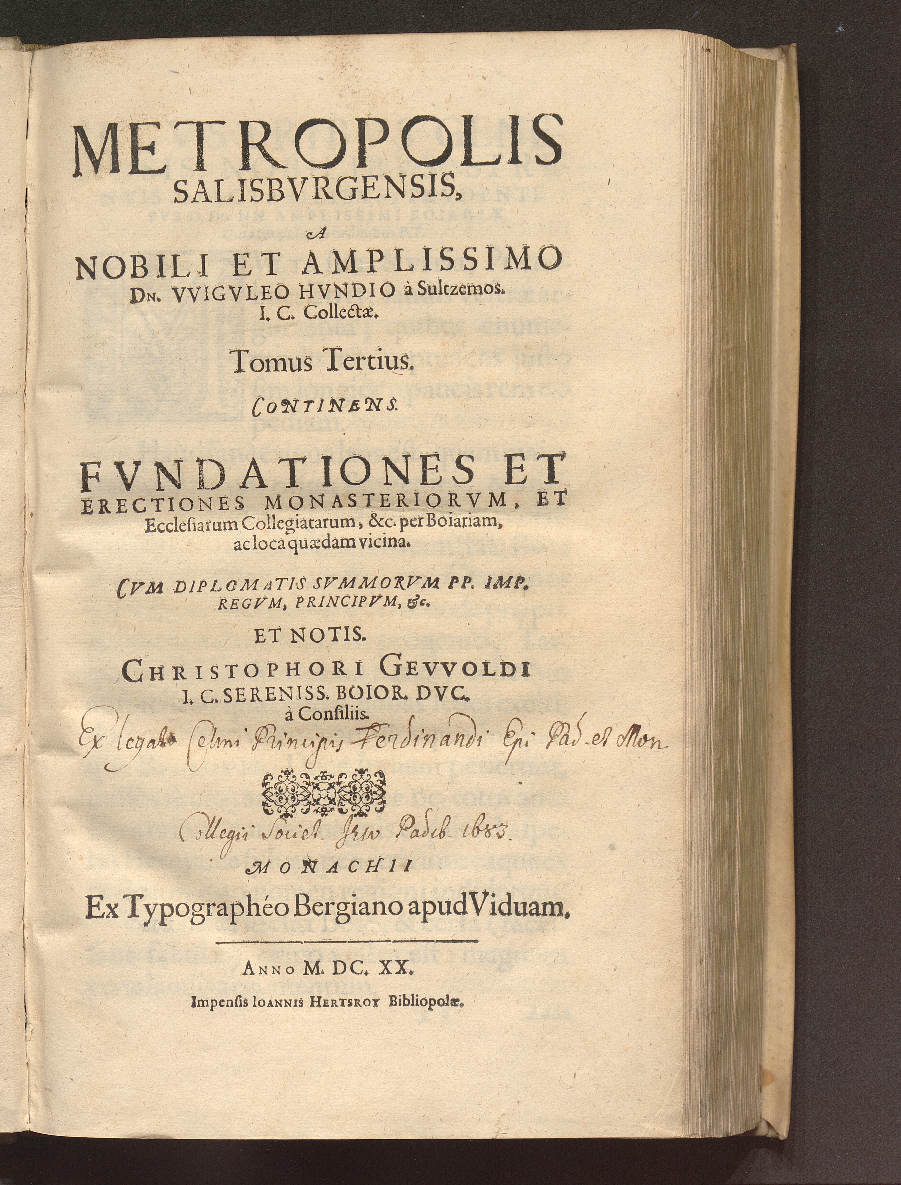 Tomus Tertius (1620) Continens. Fvndationes Et Erectiones Monasteriorvm, Et Ecclesiarum Collegiatarum, &c. per Boiariam, ac loca quædam vicina