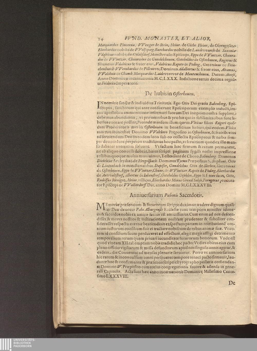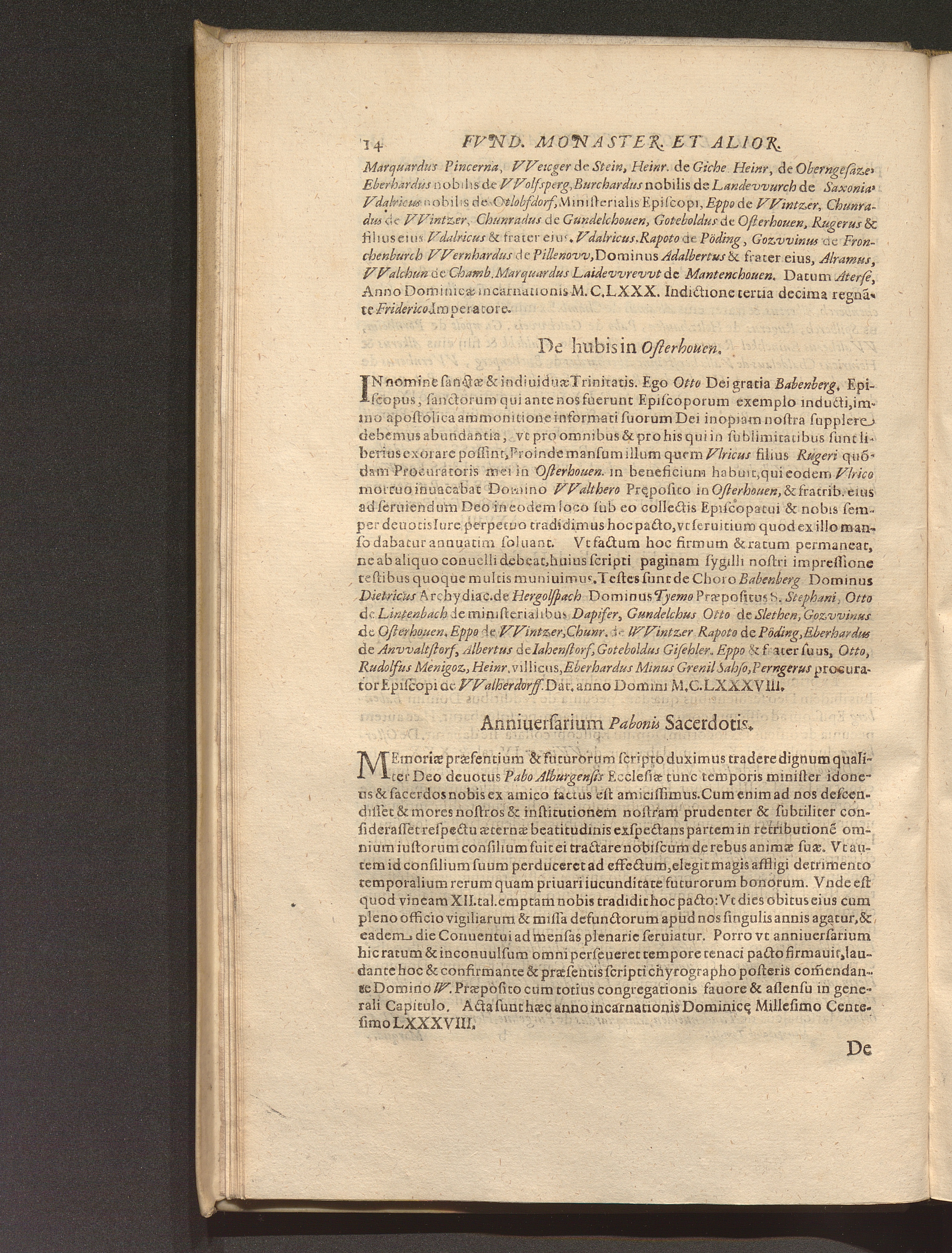 Anniuersarium Pabonis Sacerdotis.