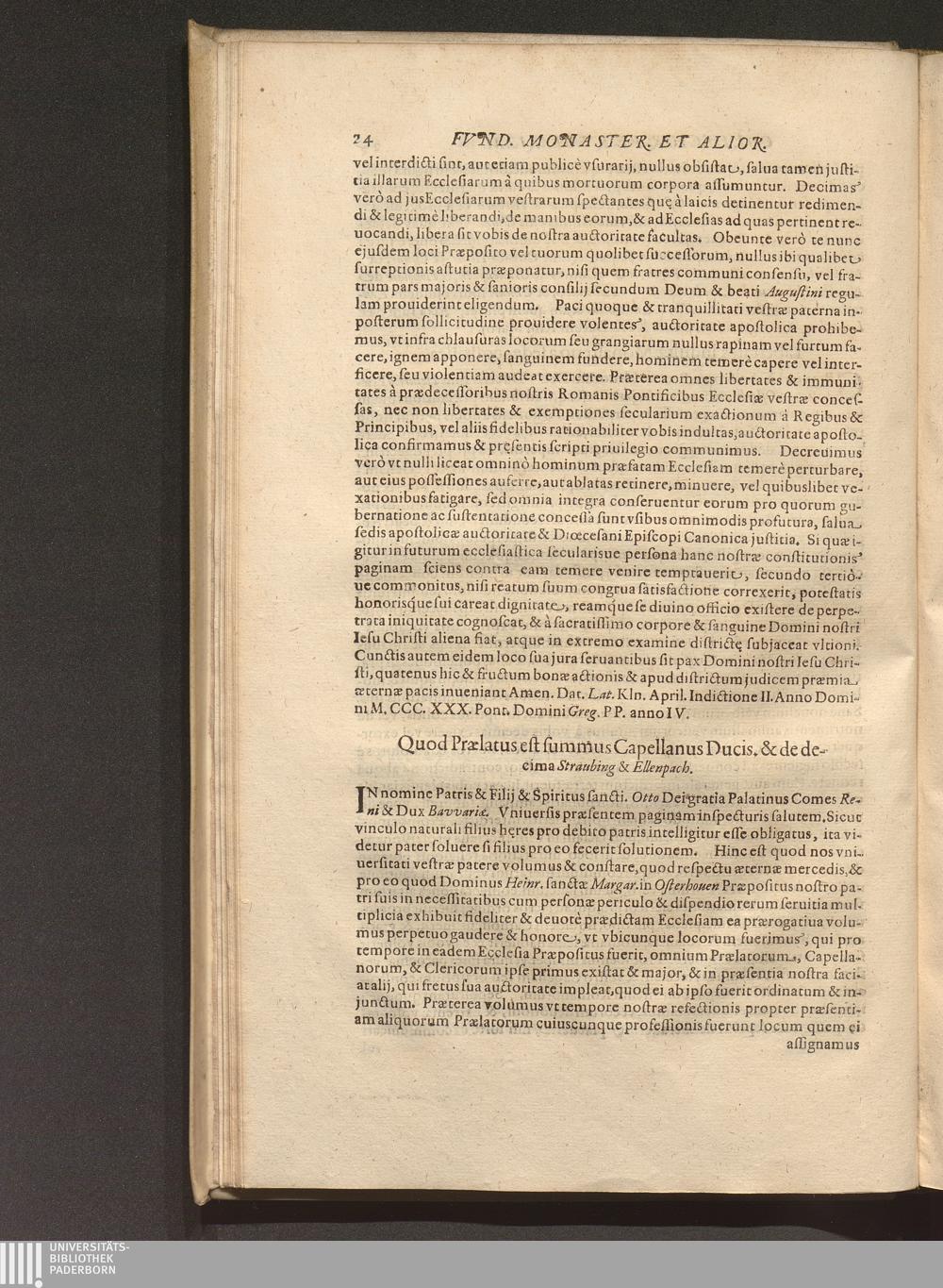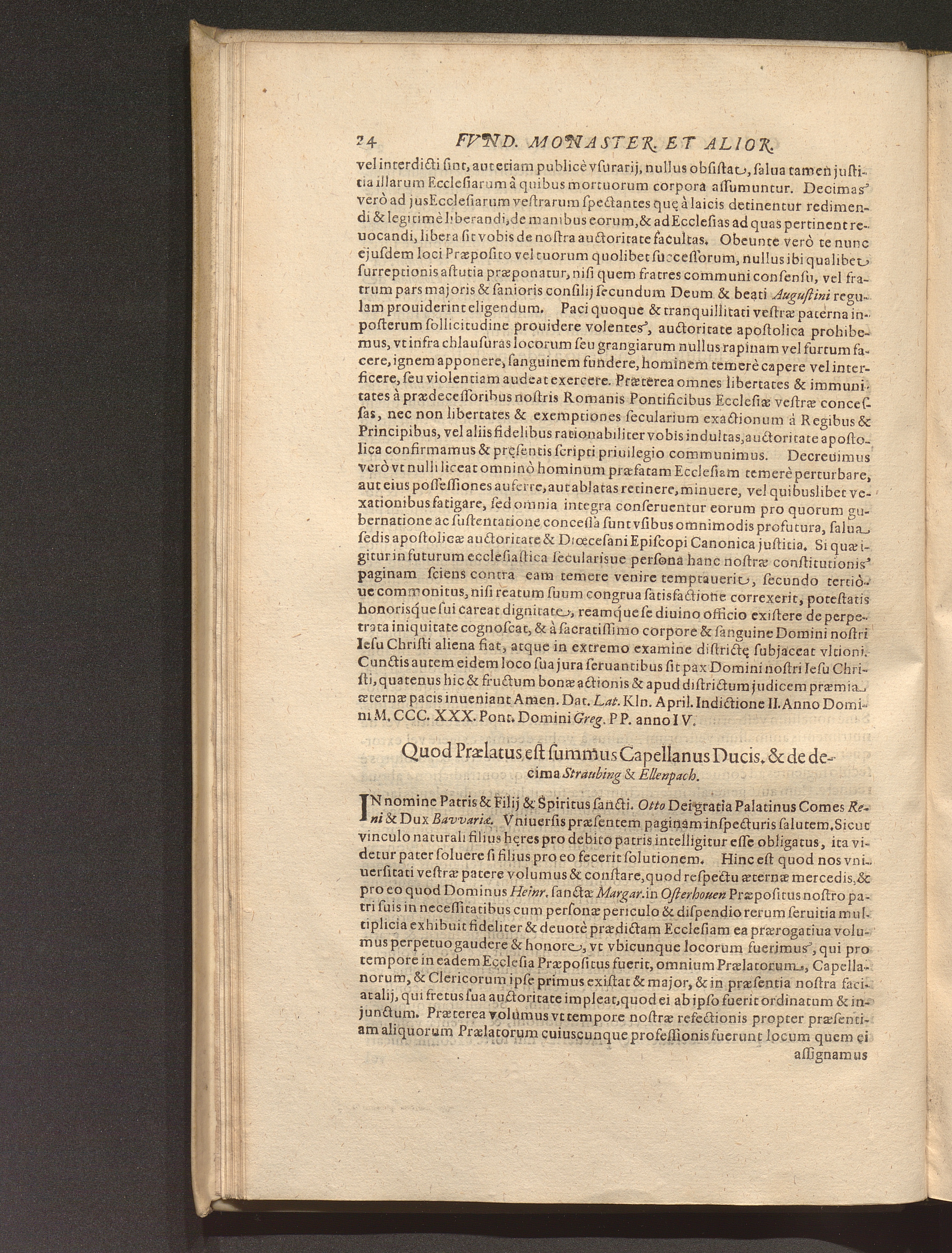 Quod Praelatus est summus Capellanus Ducis, & de decima Straubing & Ellenpach.