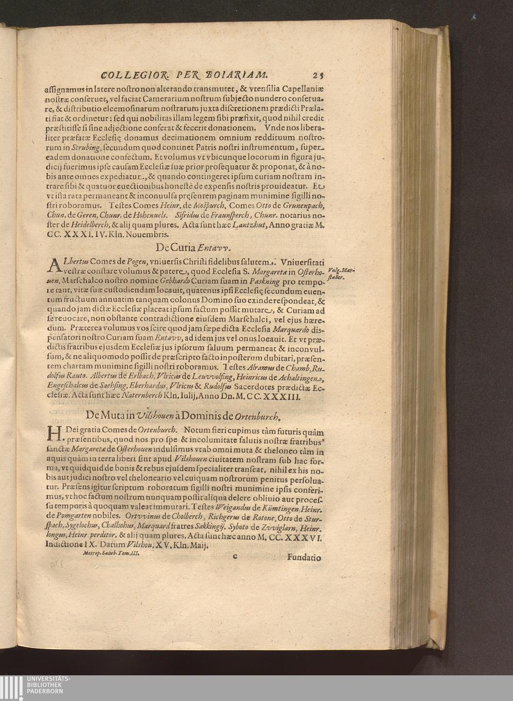 Tomus Tertius (1620) Continens. Fvndationes Et Erectiones Monasteriorvm, Et Ecclesiarum Collegiatarum, &c. per Boiariam, ac loca quædam vicina