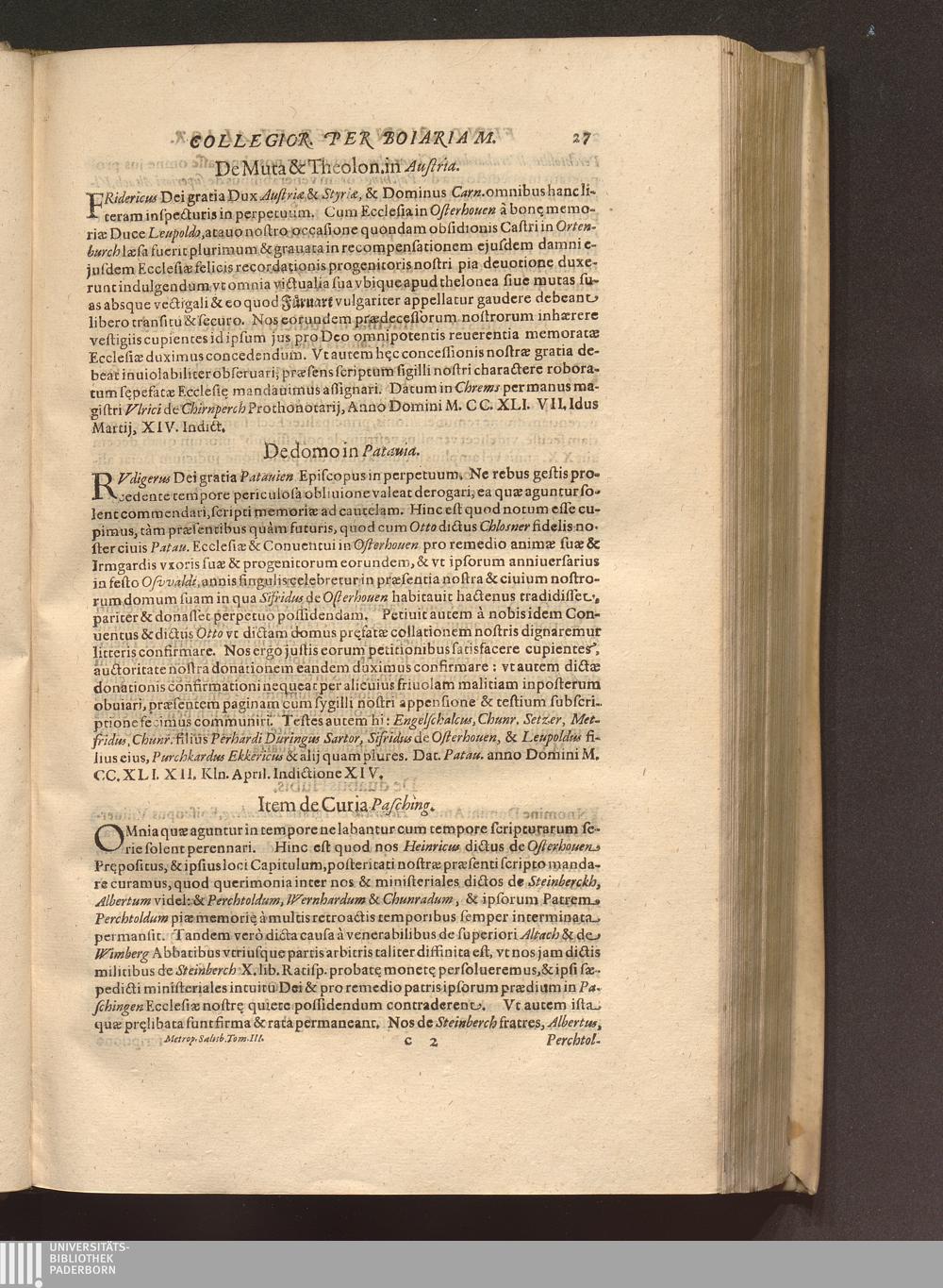 Tomus Tertius (1620) Continens. Fvndationes Et Erectiones Monasteriorvm, Et Ecclesiarum Collegiatarum, &c. per Boiariam, ac loca quædam vicina