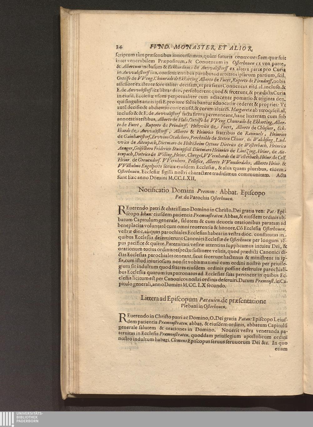 Littera ad Episcopum Patauien. de praesentatione Plebani in Osterhouen.