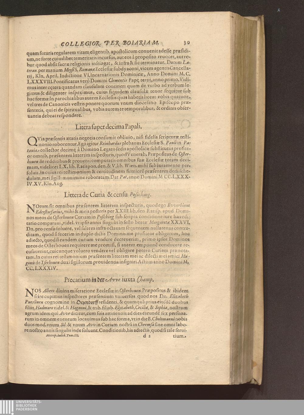 Tomus Tertius (1620) Continens. Fvndationes Et Erectiones Monasteriorvm, Et Ecclesiarum Collegiatarum, &c. per Boiariam, ac loca quædam vicina