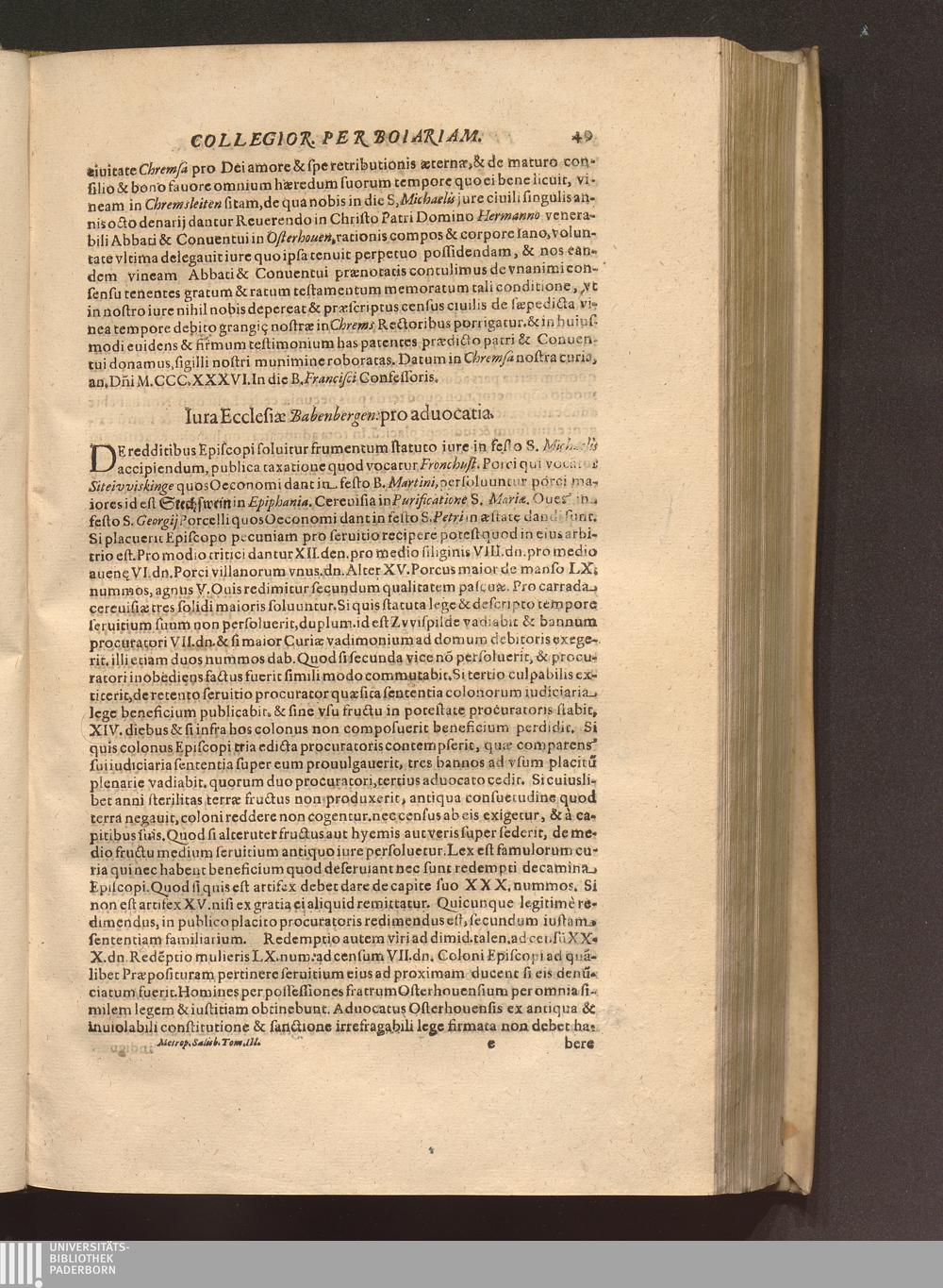 Iura Ecclesiae Babenbergen: pro aduocatia.
