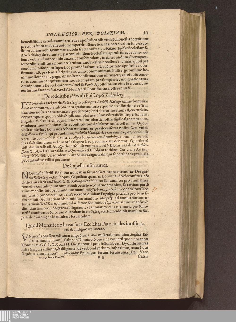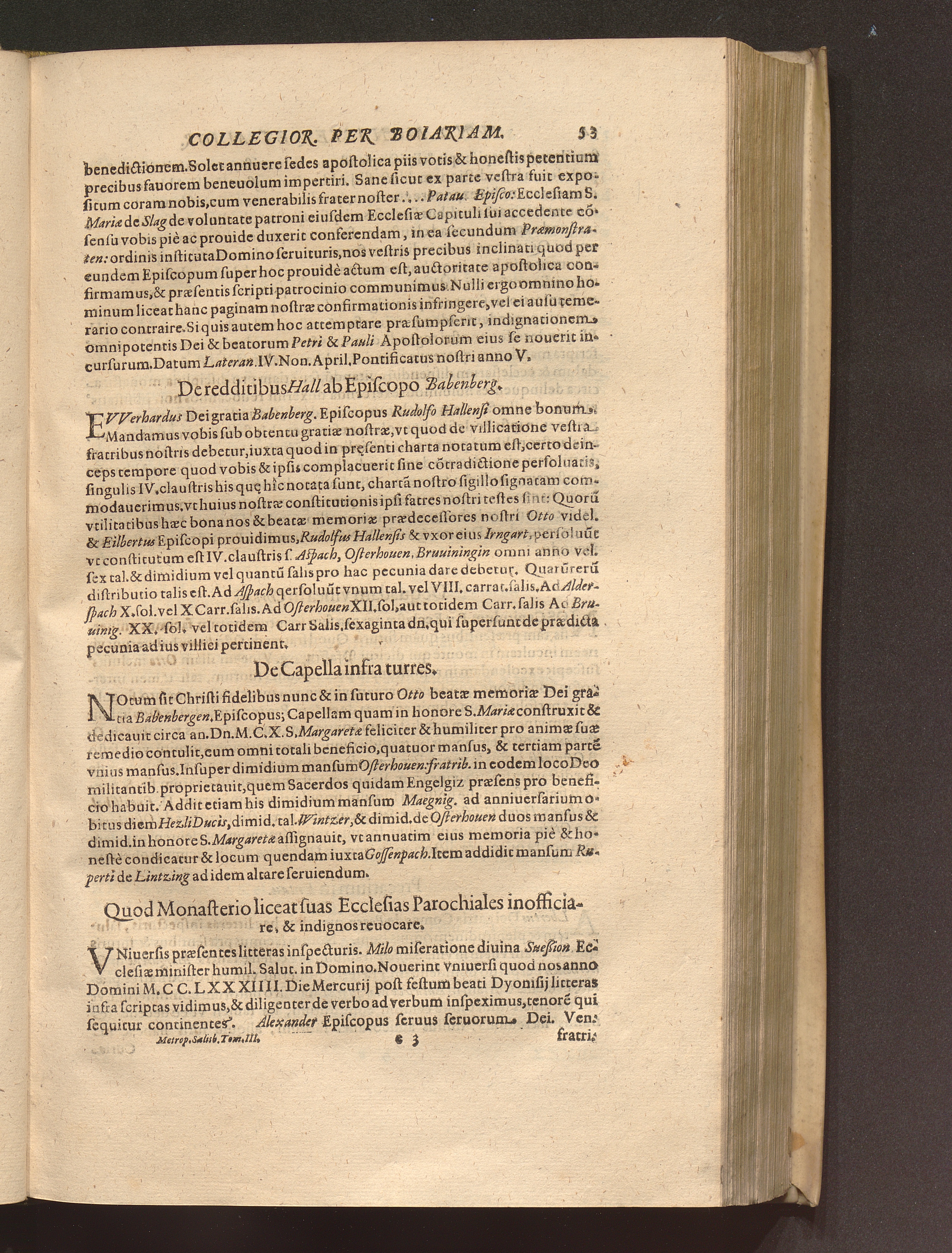 Tomus Tertius (1620) Continens. Fvndationes Et Erectiones Monasteriorvm, Et Ecclesiarum Collegiatarum, &c. per Boiariam, ac loca quædam vicina