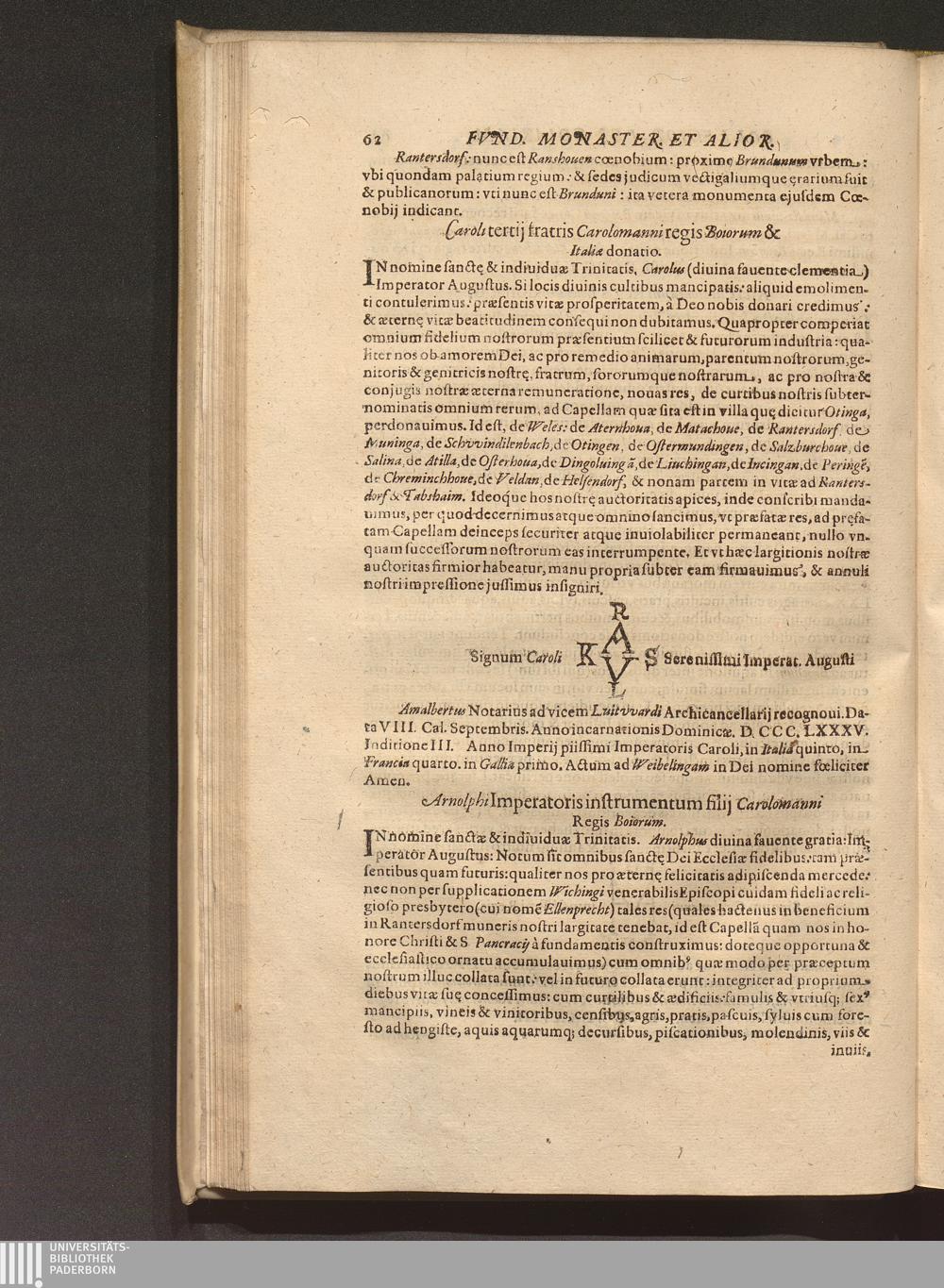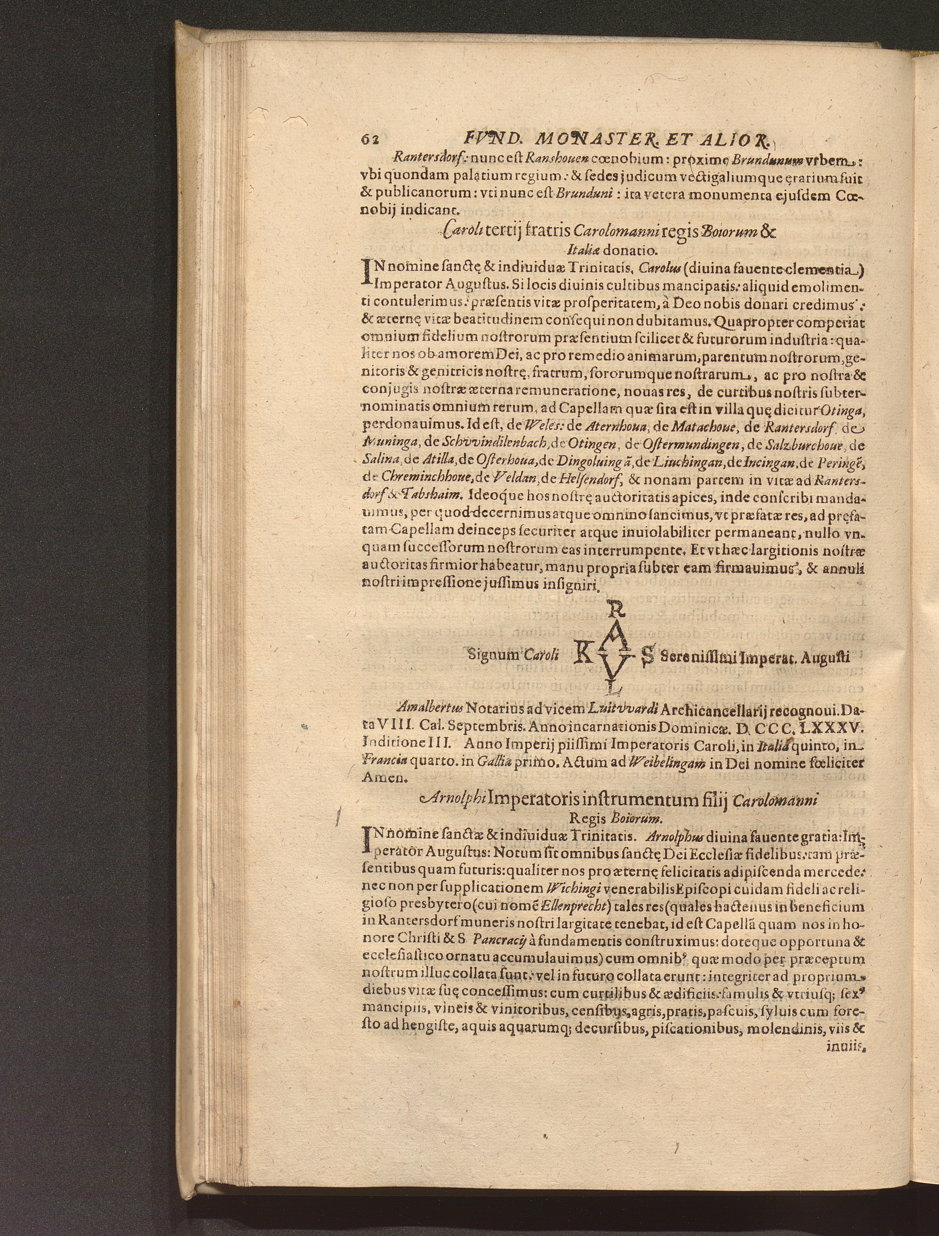 Arnolphi Imperatoris instrumentum filij Carolomanni Regis Boiorum.