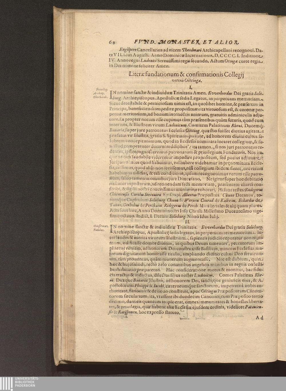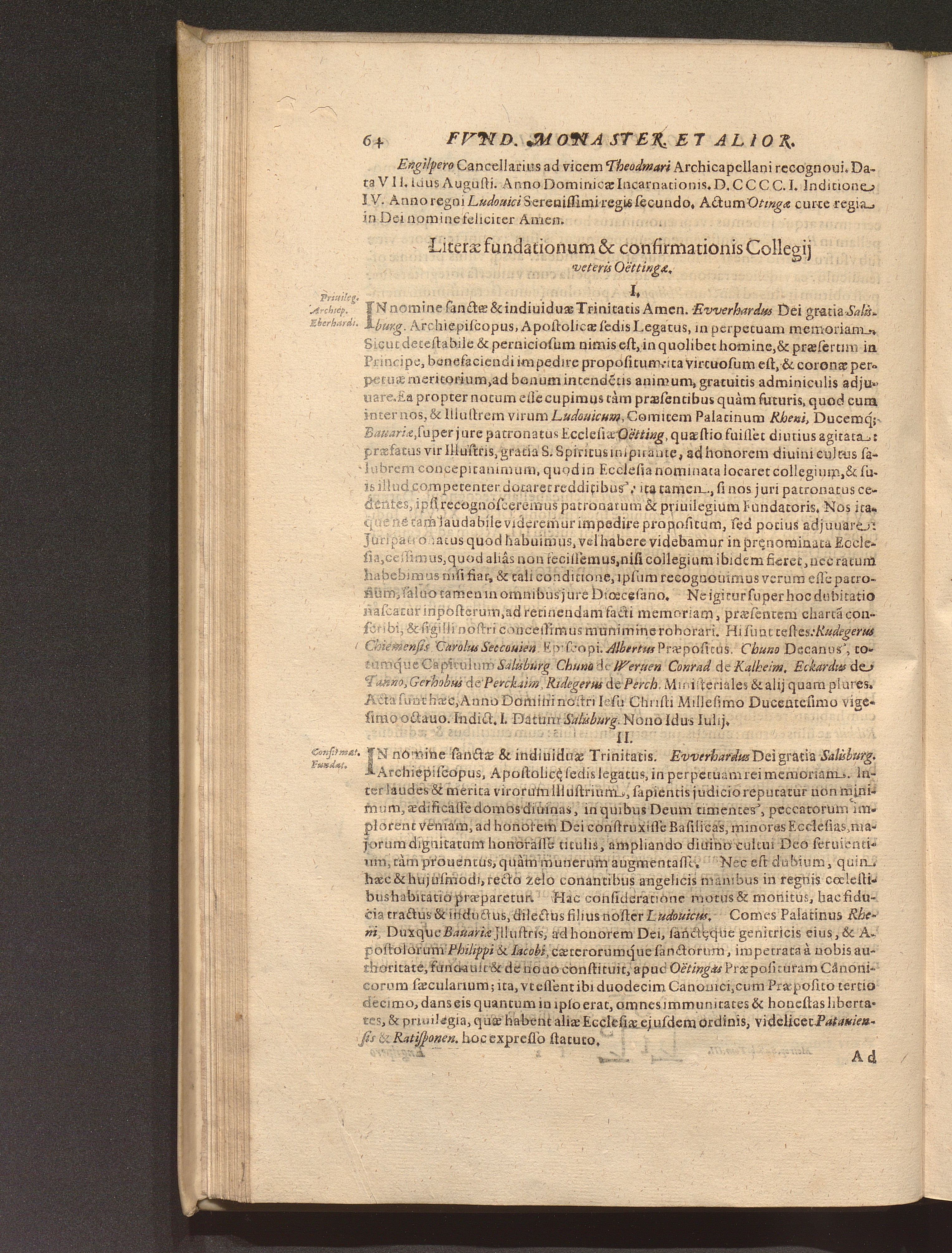 Literae fundationum & confirmationis Collegij veteris Oëttingae.