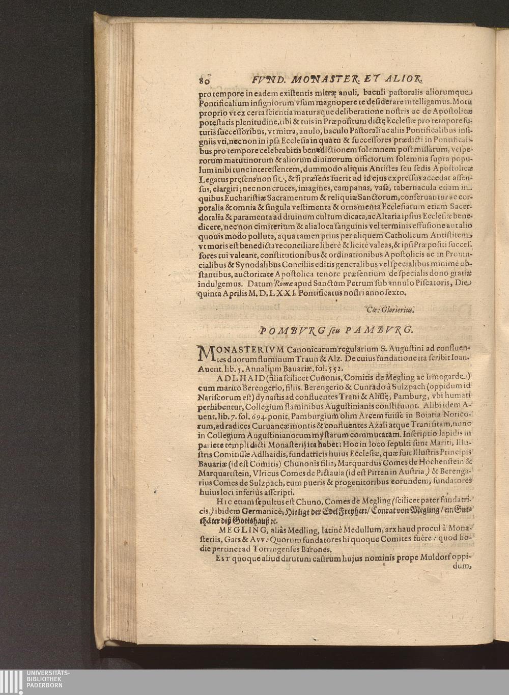 Tomus Tertius (1620) Continens. Fvndationes Et Erectiones Monasteriorvm, Et Ecclesiarum Collegiatarum, &c. per Boiariam, ac loca quædam vicina
