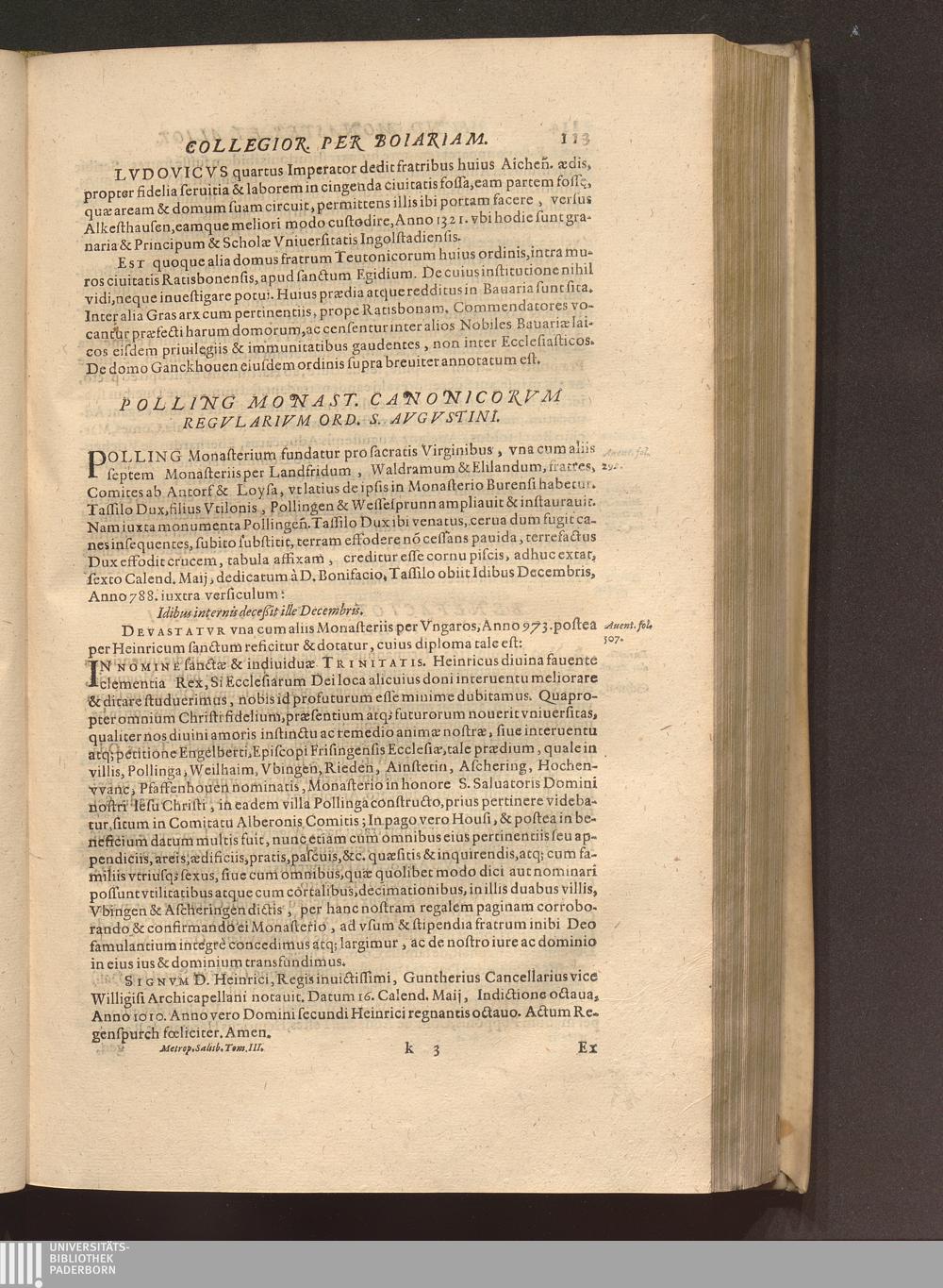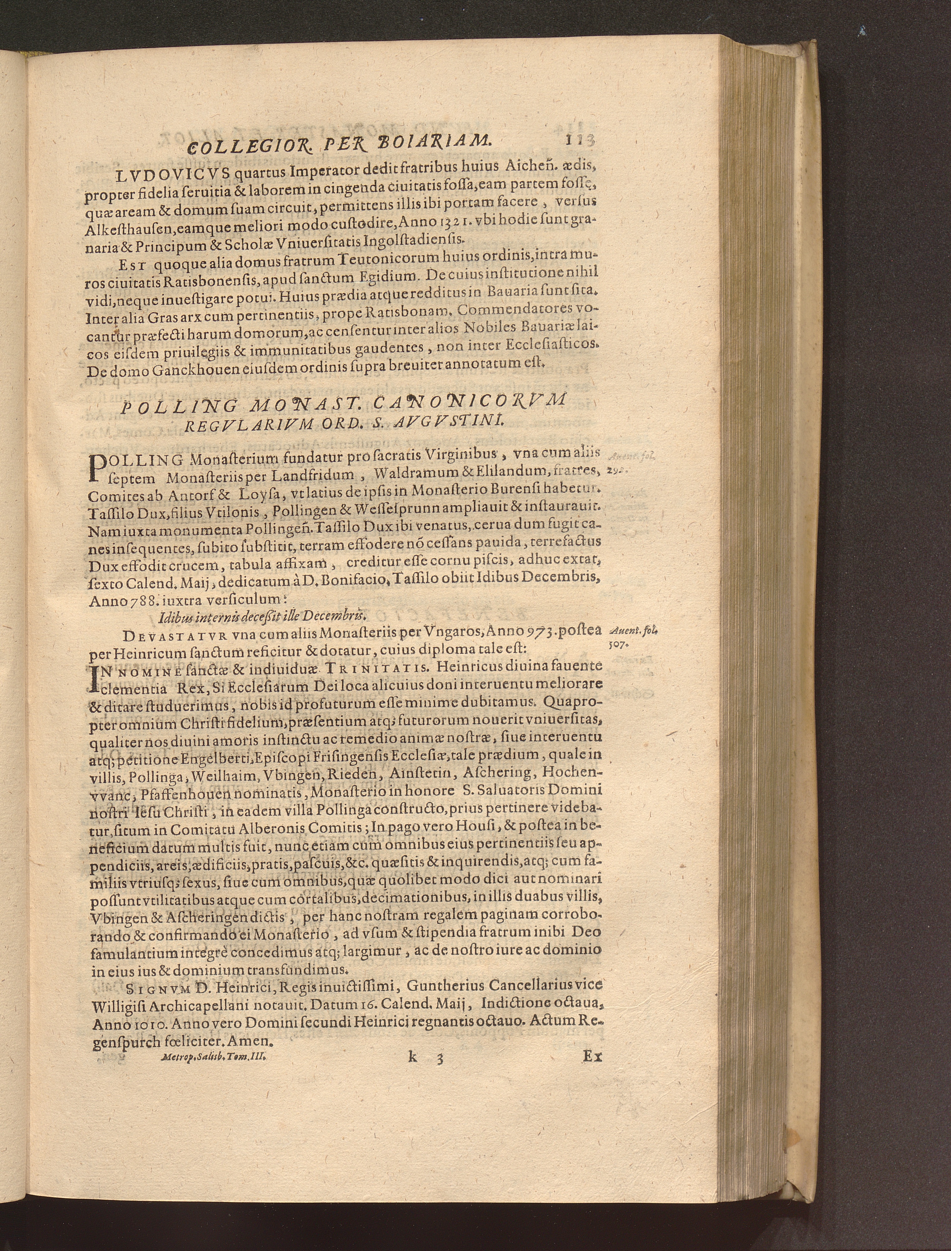 Tomus Tertius (1620) Continens. Fvndationes Et Erectiones Monasteriorvm, Et Ecclesiarum Collegiatarum, &c. per Boiariam, ac loca quædam vicina