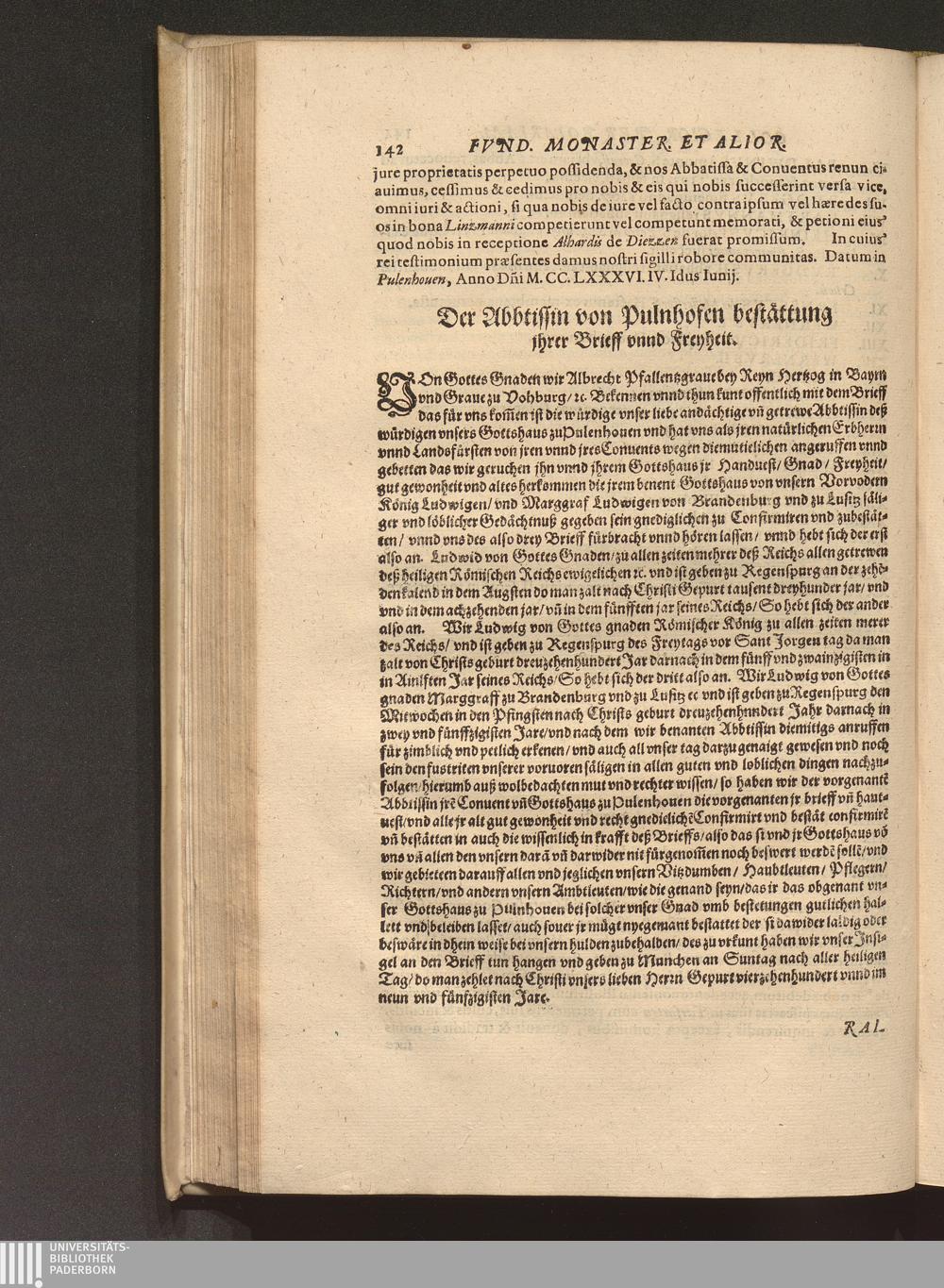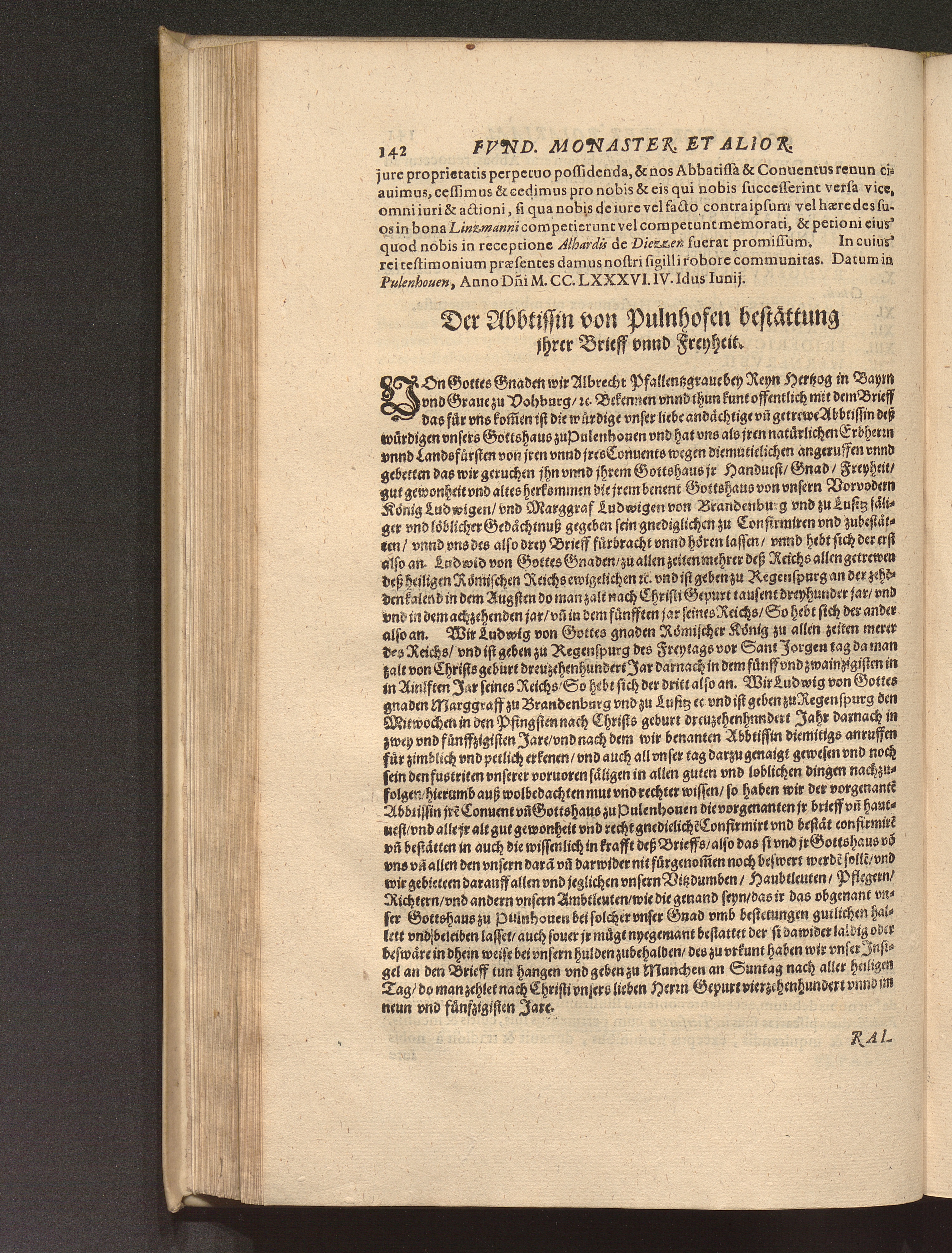 Der Abbtissin von Pulnhofen bestättung jhrer Brieff vnnd Freyheit.