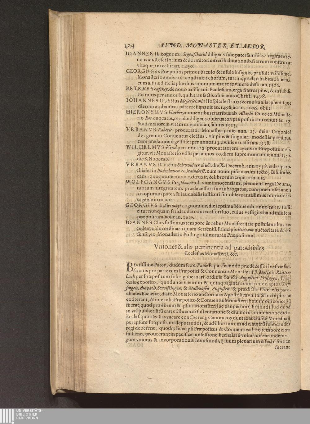 Vniones & alia pertinentia ad parochiales Ecclesias Monasterij, &c.
