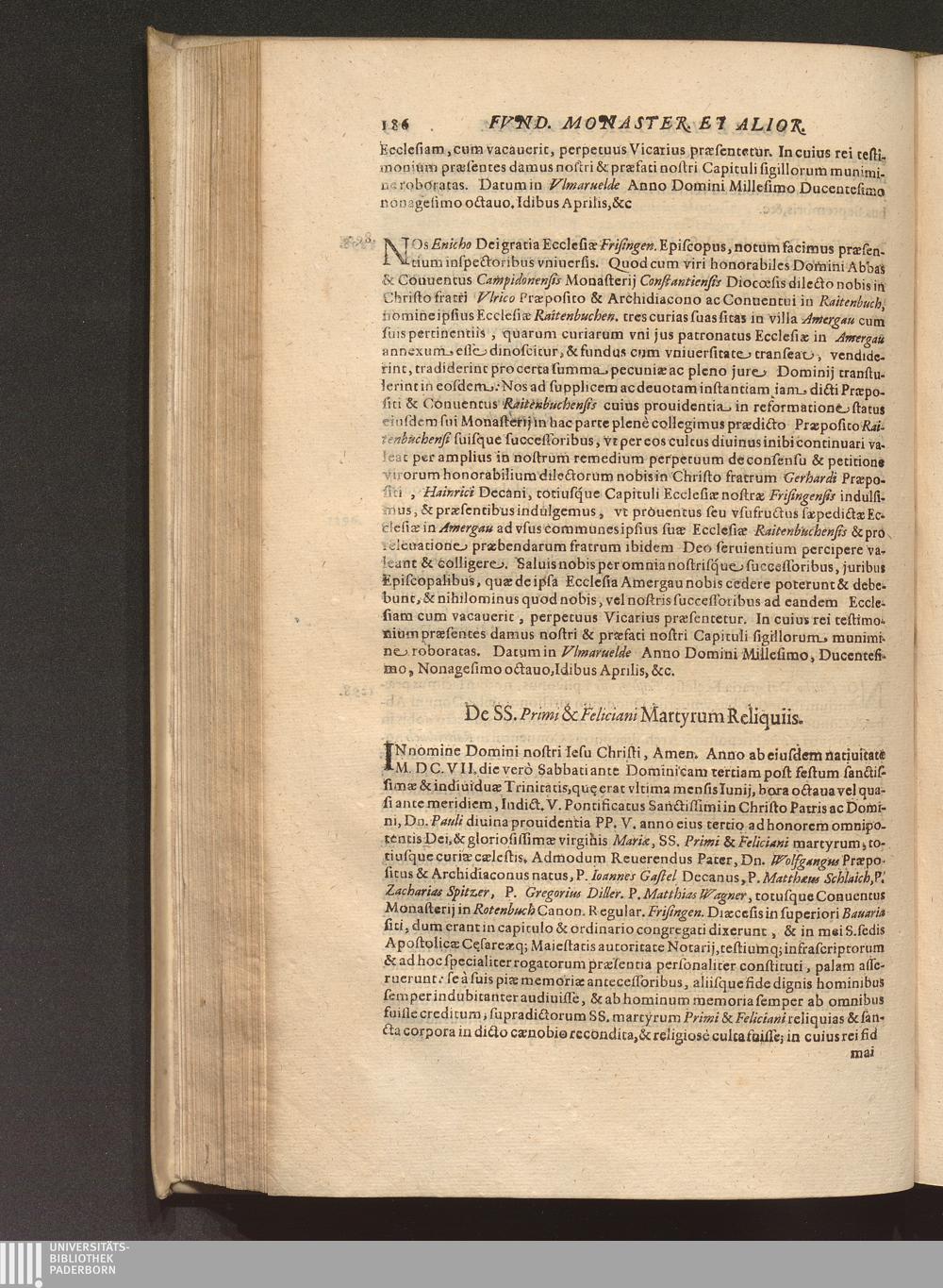 De SS. Primi & Feliciani Martyrum Reliquiis.