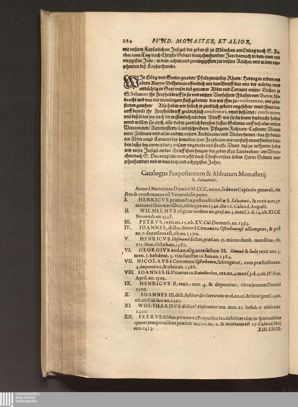 Catalogus Praepositorum & Abbatum Monasterij S. Saluatoris.