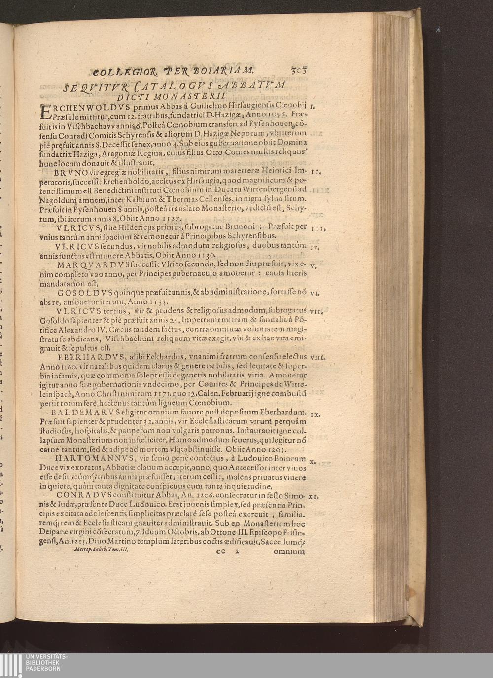 Seqvitvr Catalogvs Abbatvm Dicti Monasterii.