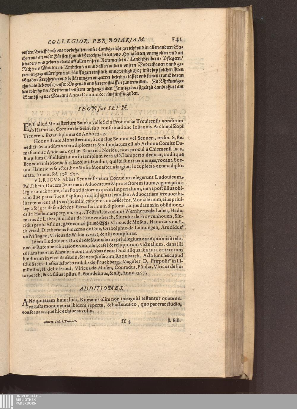Tomus Tertius (1620) Continens. Fvndationes Et Erectiones Monasteriorvm, Et Ecclesiarum Collegiatarum, &c. per Boiariam, ac loca quædam vicina