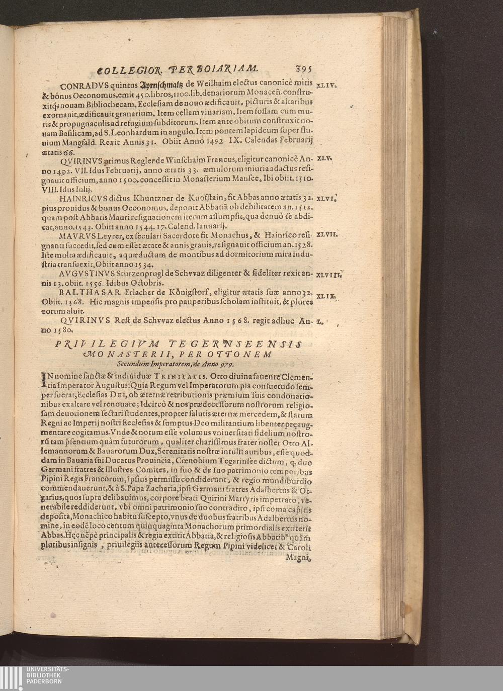Privilegivm Tegernseensis Monasterii, Per Ottonem Secundum Imperatorem, de Anno [...]