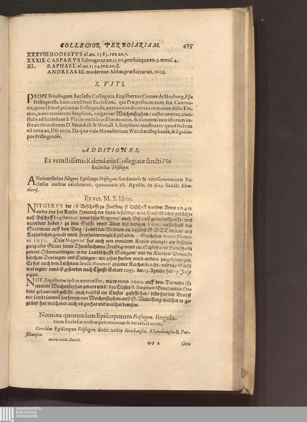 Nomina quorundam Episcoporum Frisingen. singularium Ecclesiae nostrae patronorum[...]
