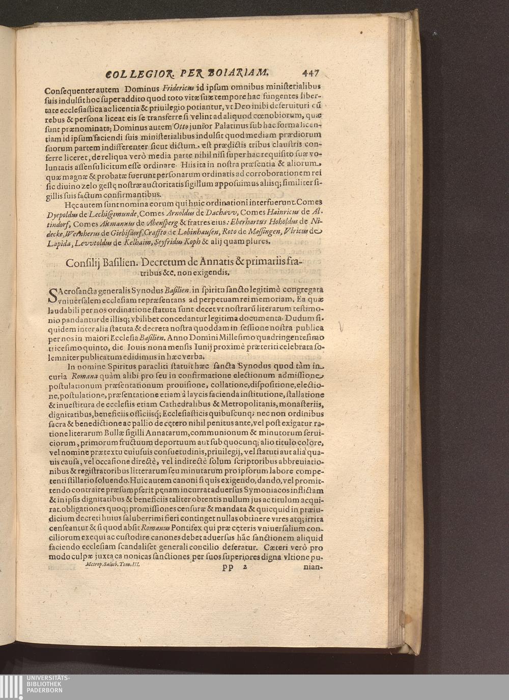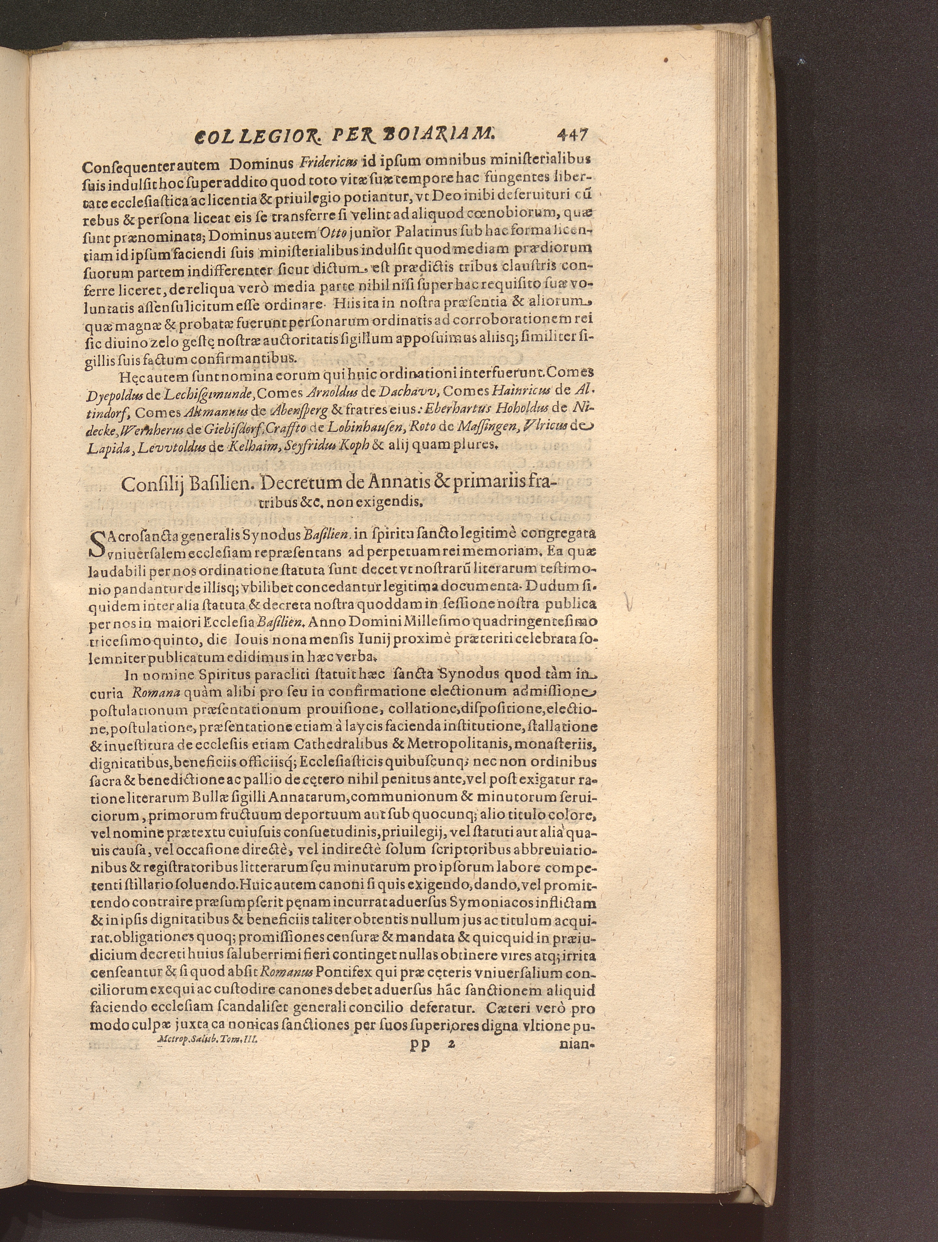 Consilij Basilien. Decretum de Annatis & primariis fratribus &c. non exigendis.