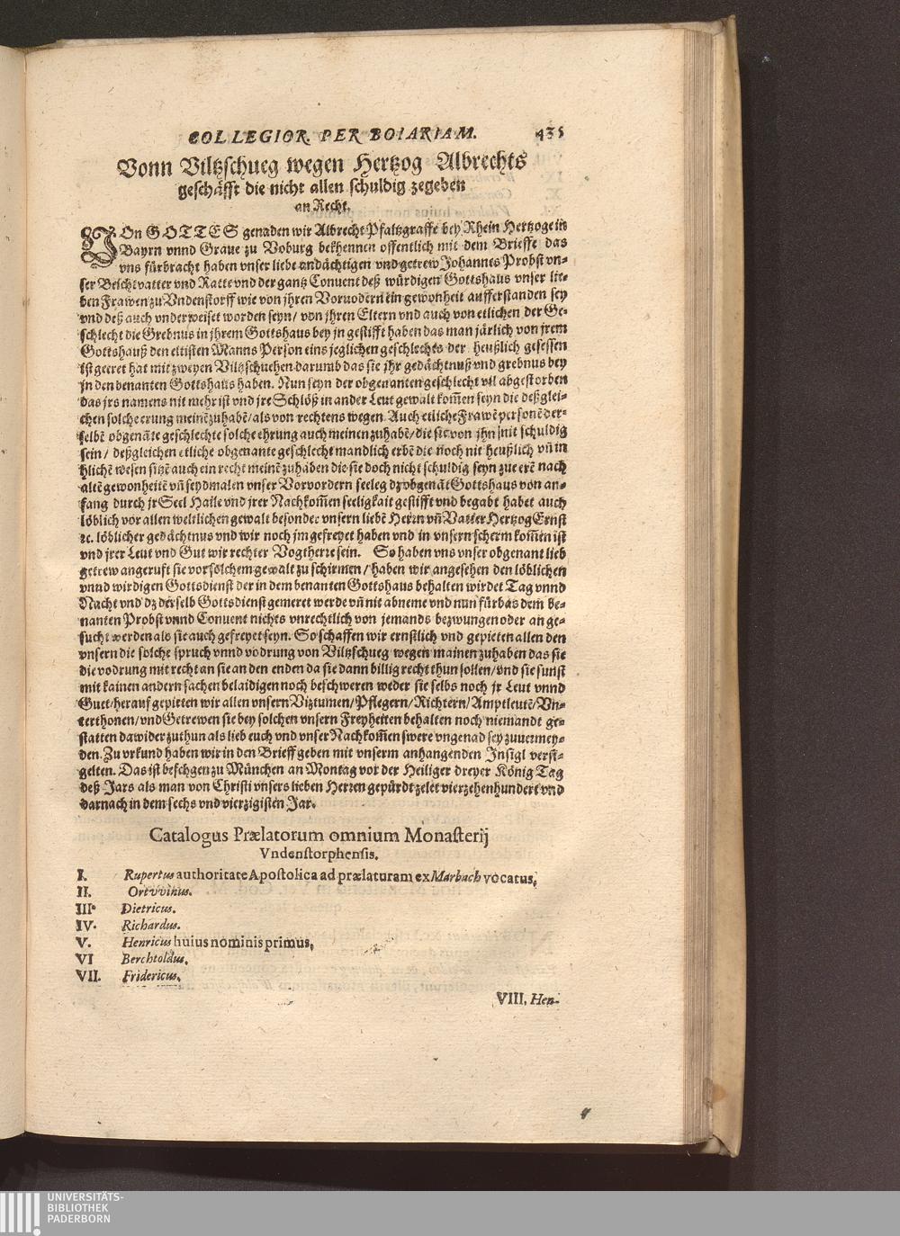 Catalogus Praelatorum omnium Monasterij Vndenstorphensis.