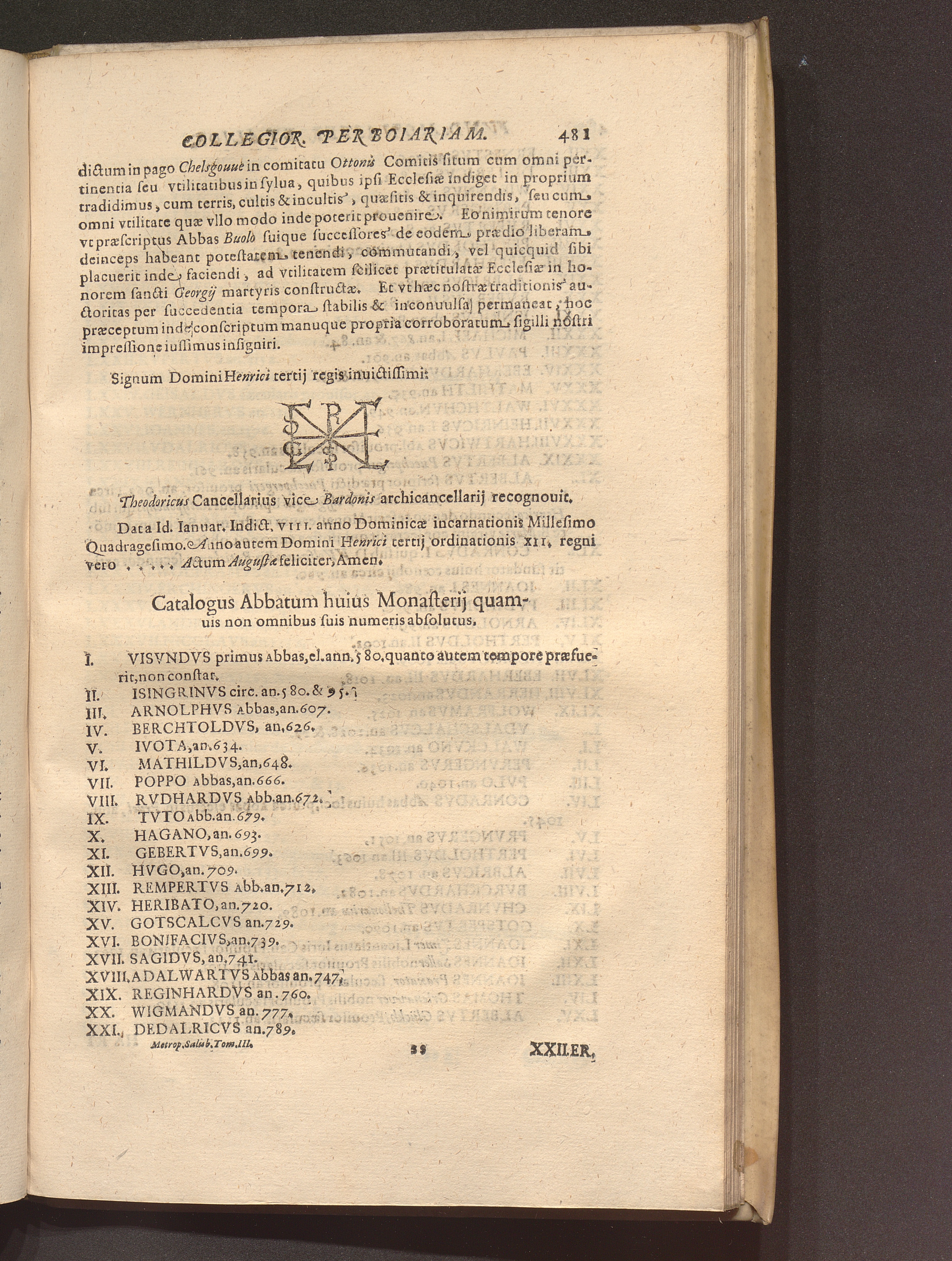 Catalogus Abbatum huius Monasterij quamuis non omnibus suis numeris absolutus.