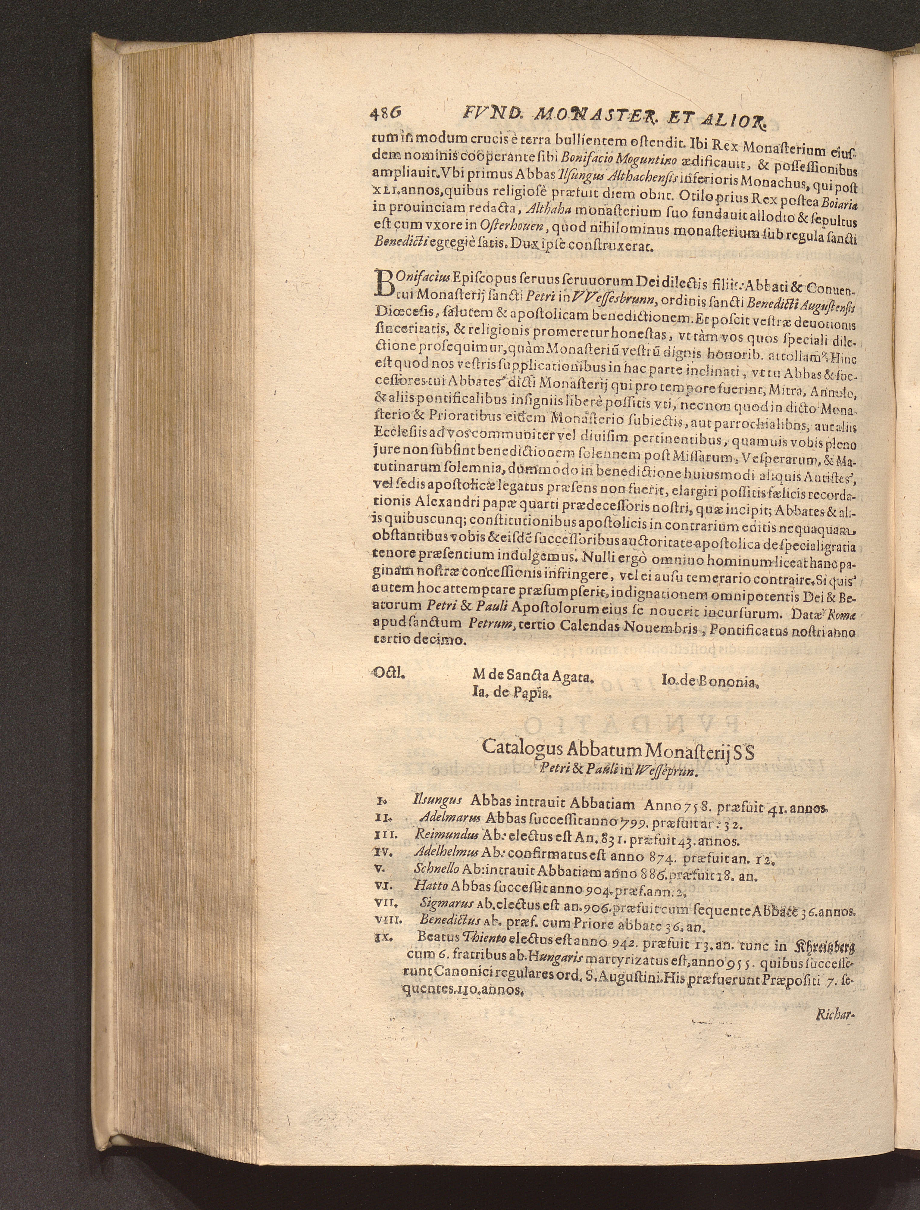 Catalogus Abbatum Monasterij SS Petri & Pauli in Wesseprun.