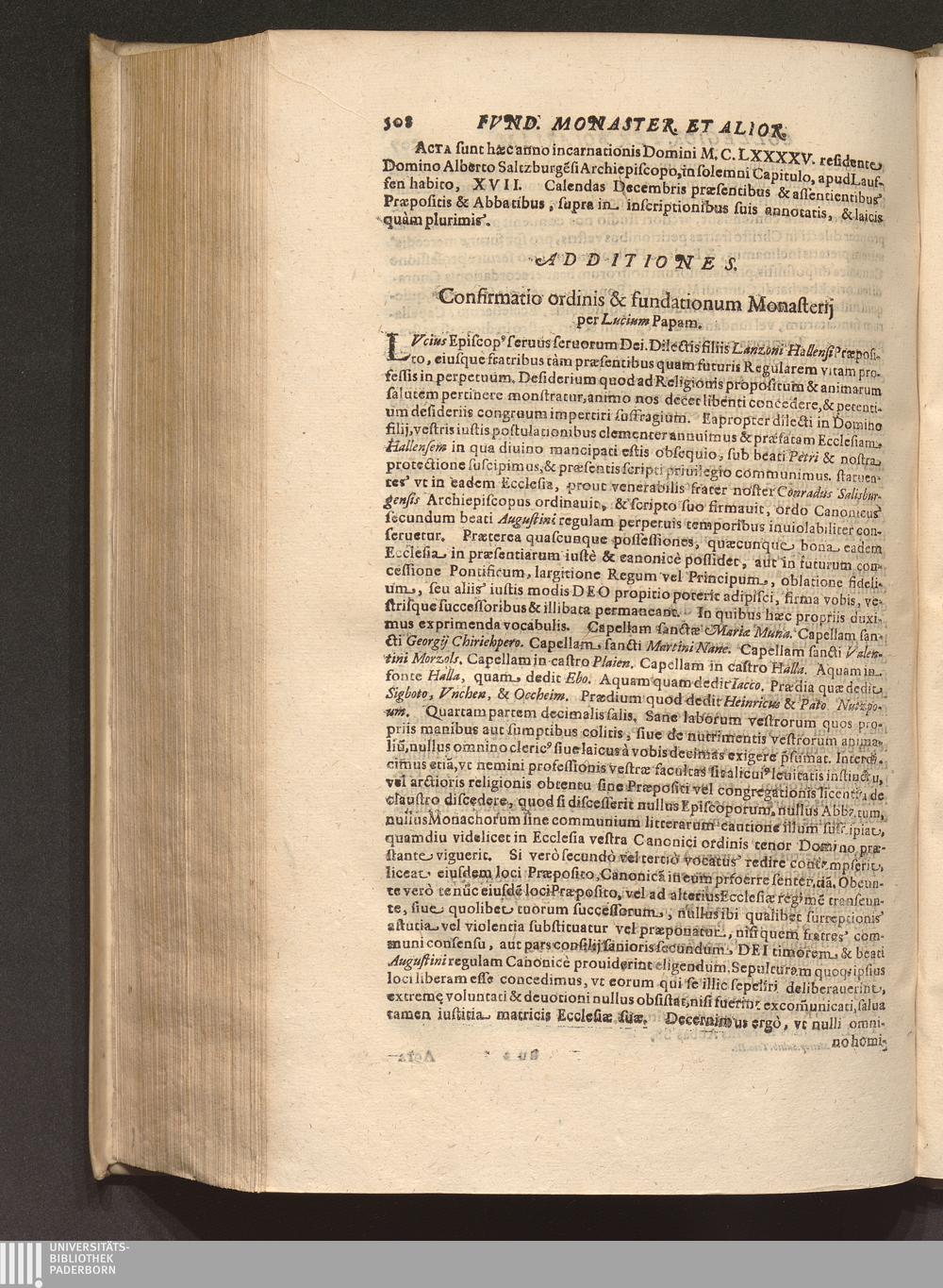 Confirmatio ordinis & fundationum Monasterij per Lucium Papam.