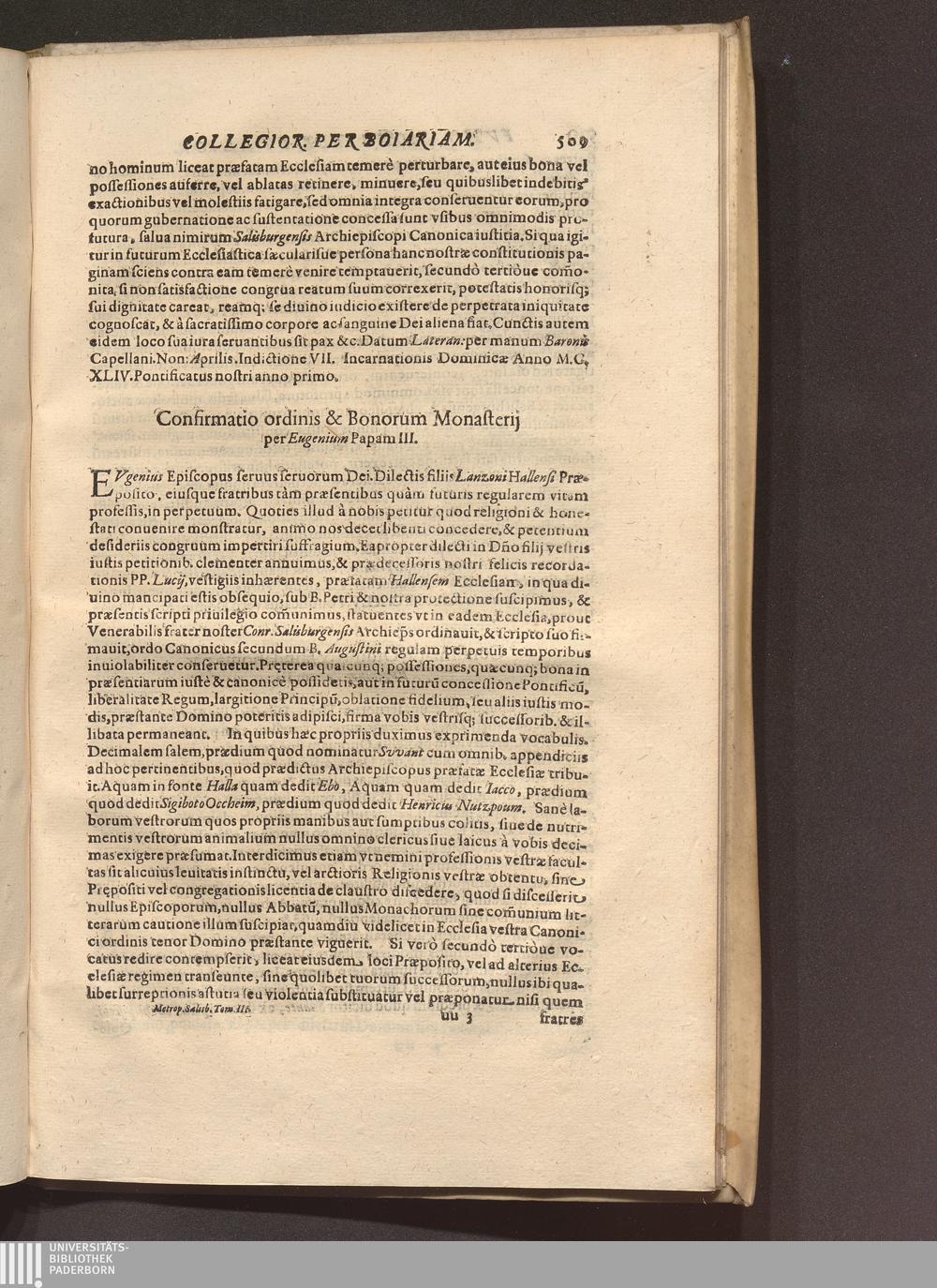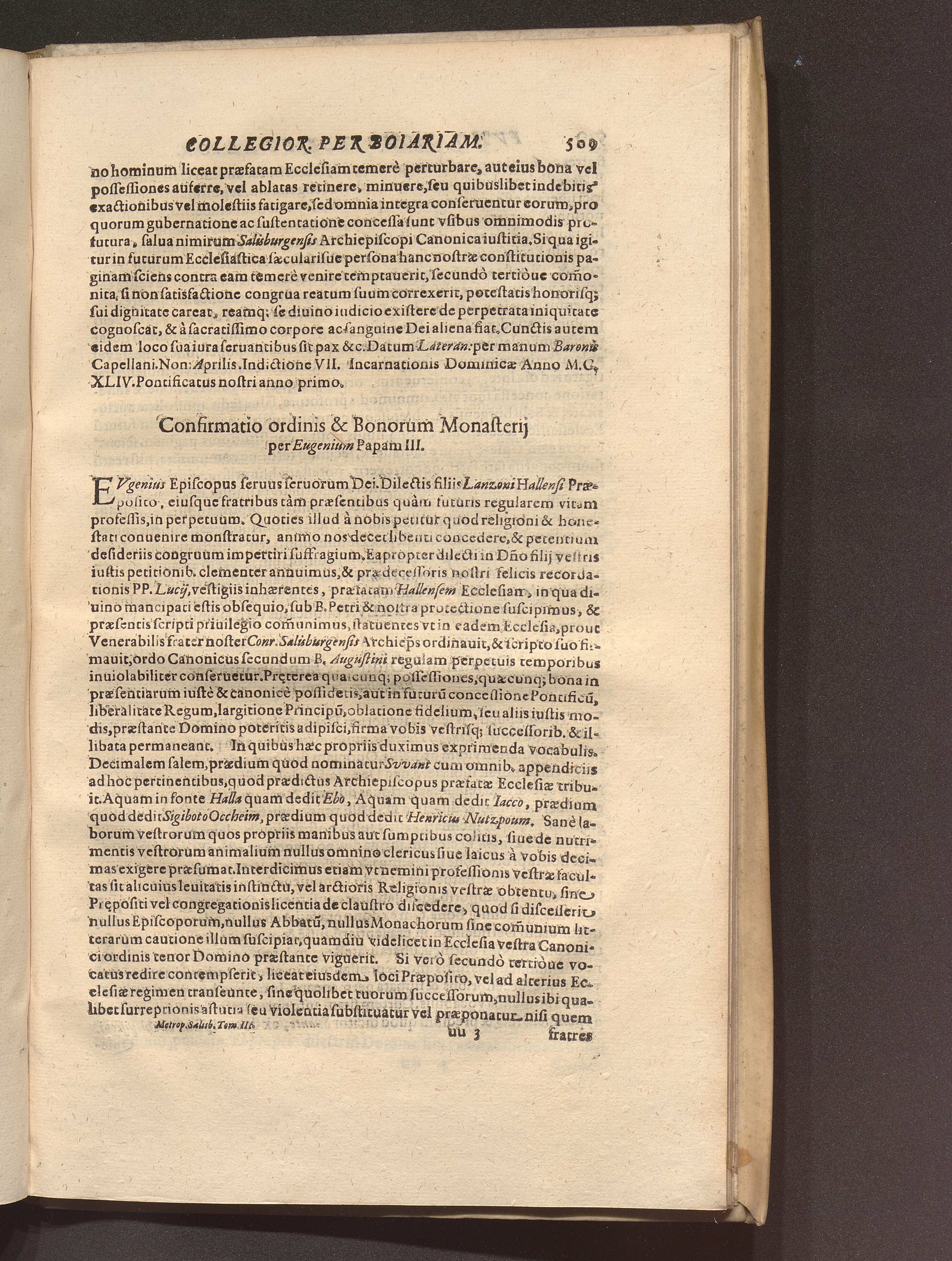 Confirmatio ordinis & Bonorum Monasterij per Eugenium Papam III.