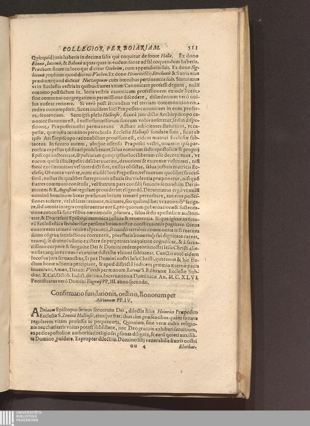 Confirmatio fundationis, ordinis, Bonorum per Adrianum PP. IV.