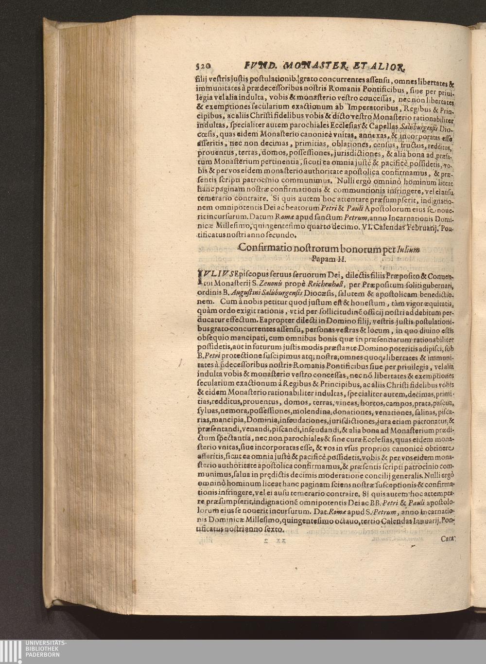 Confirmatio nostrorum bonorum per Iulium Papam II.