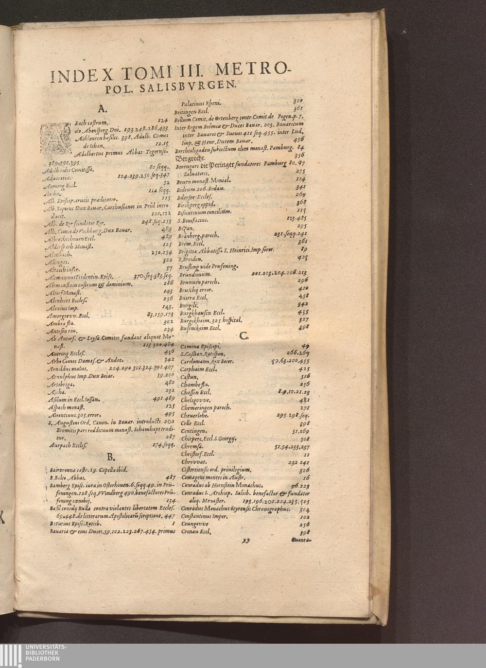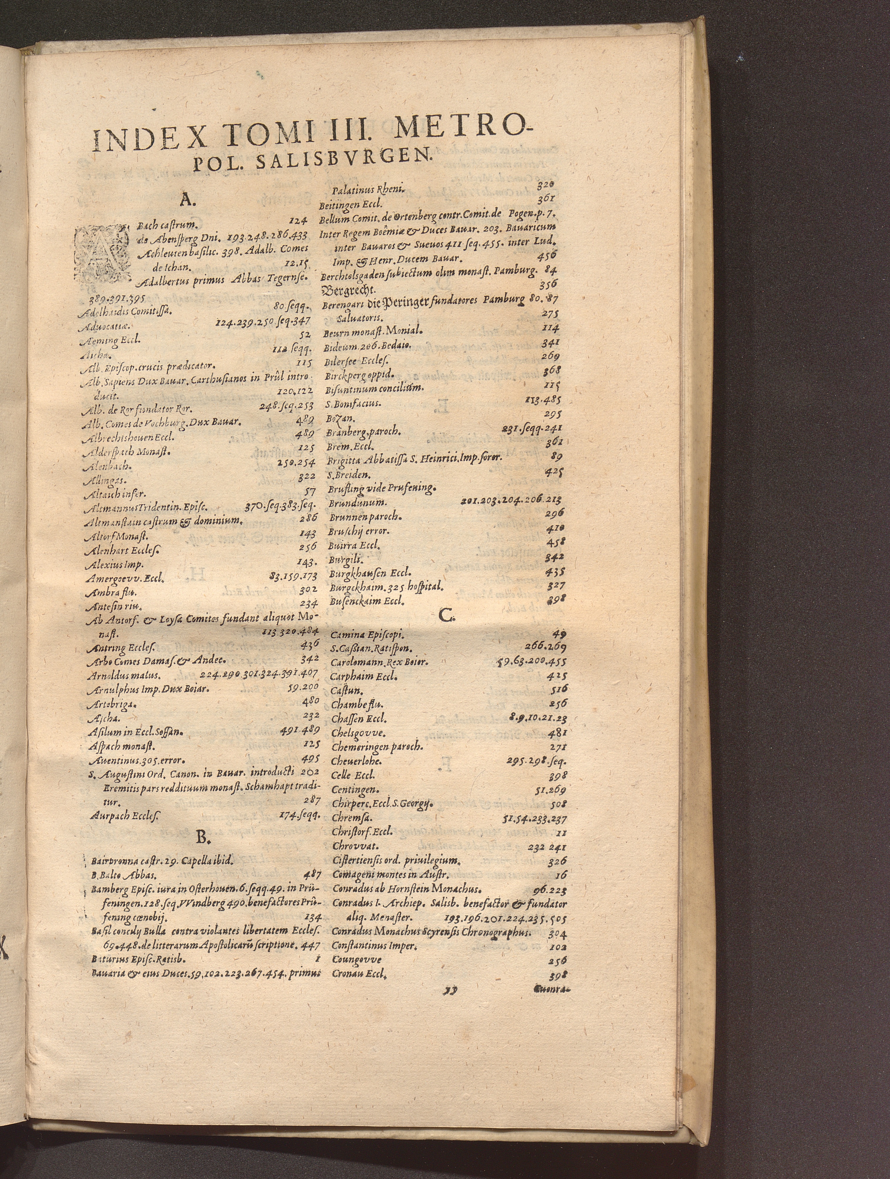 Index Tomi III. Metropol. Salisbvrgen.
