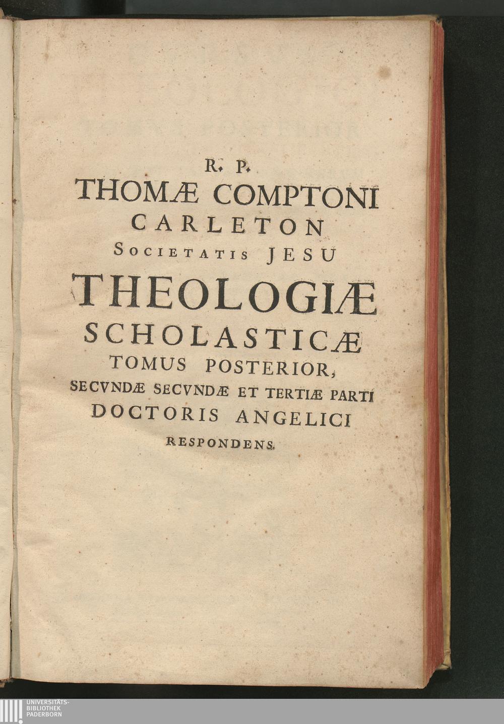 Tomvs Posterior (1664) Quas Secunda Secundæ Et Tertia Pars Divi Thomæ Complectitvr : Qvæstiones Insvper Ad Mores, & praxim spectantes, maximè circa Sacramenta, accuratè declarantur