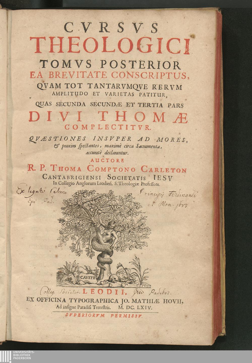 Tomvs Posterior (1664) Quas Secunda Secundæ Et Tertia Pars Divi Thomæ Complectitvr : Qvæstiones Insvper Ad Mores, & praxim spectantes, maximè circa Sacramenta, accuratè declarantur