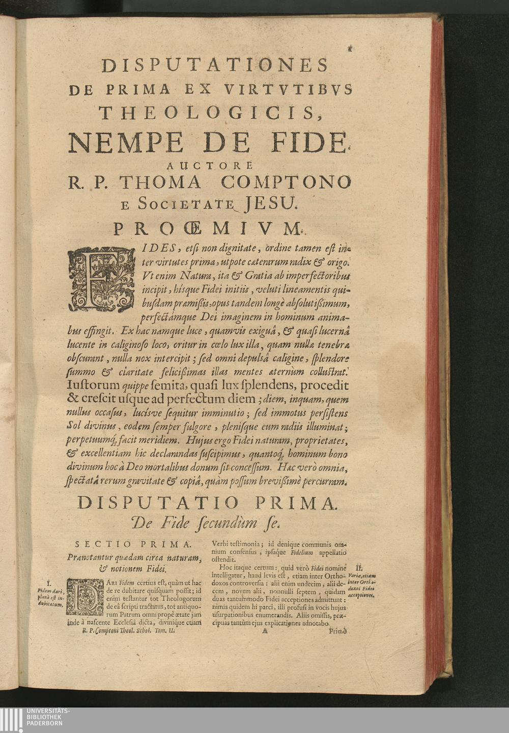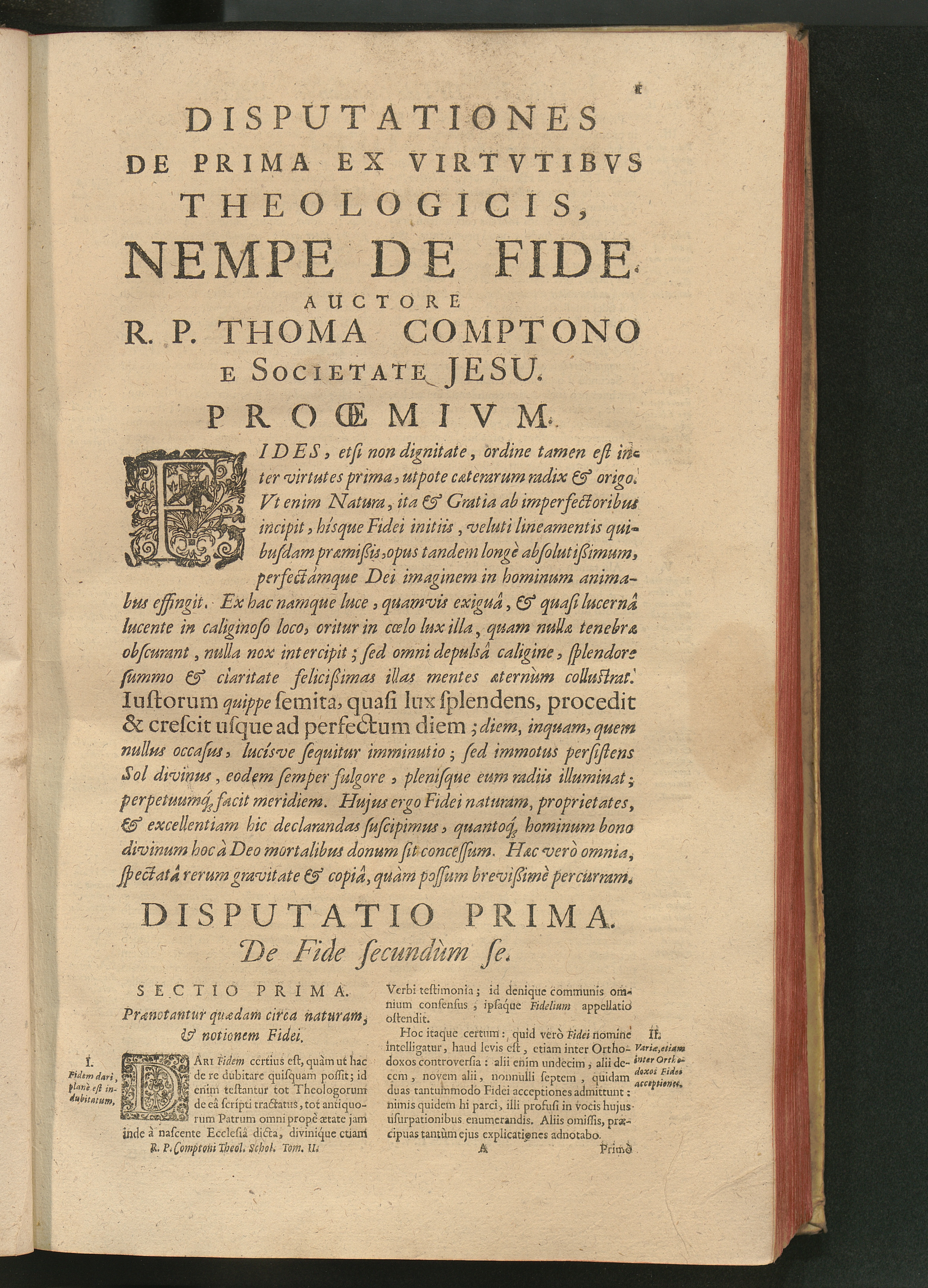 Disputatio Prima. De Fide secundùm se.