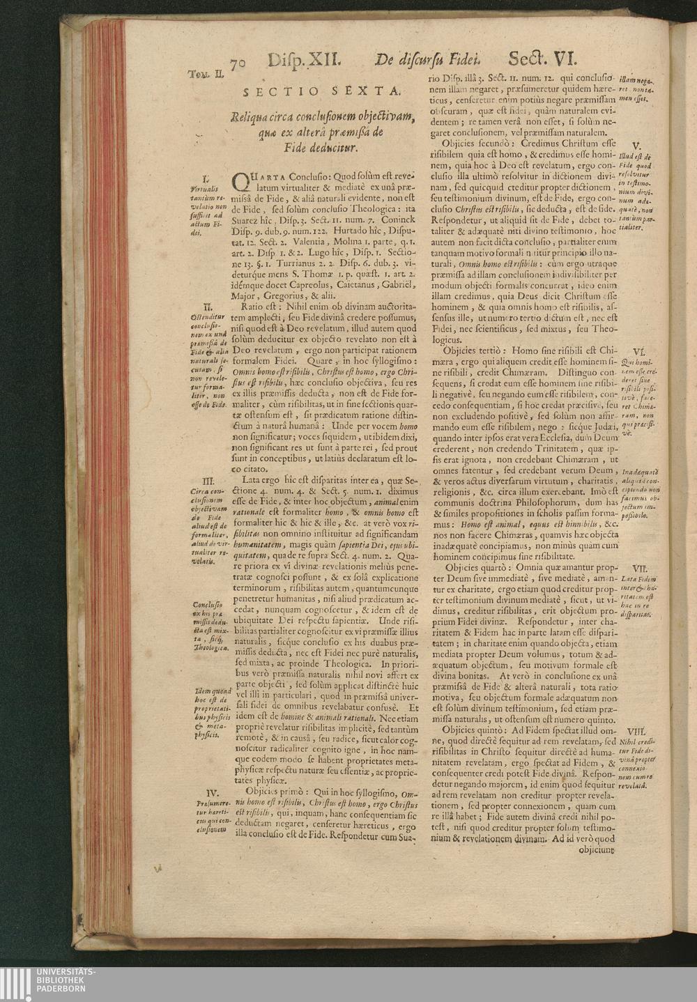 Sect. VI. Reliqua circa conclusionem objectivam quæ ex altera præmissa de Fide d[...]