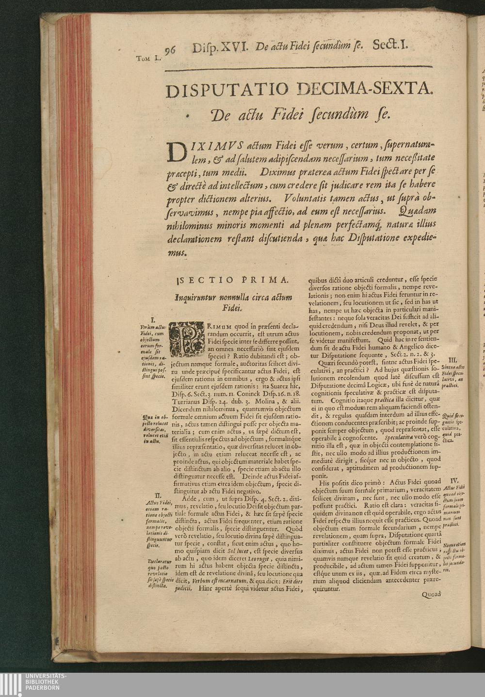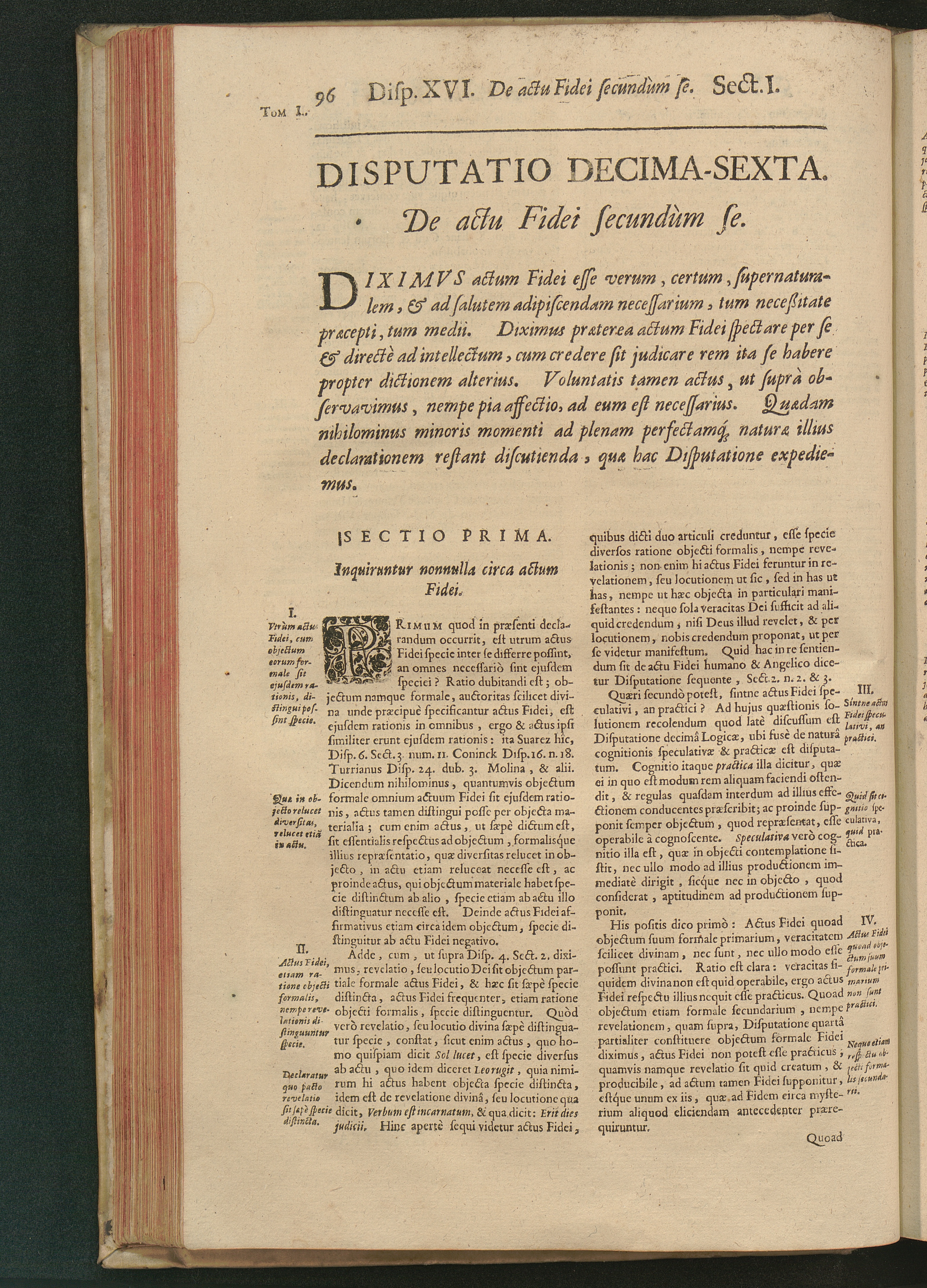 Sectio I. Inquiruntur nonnulla circa actu[m] Fidei.