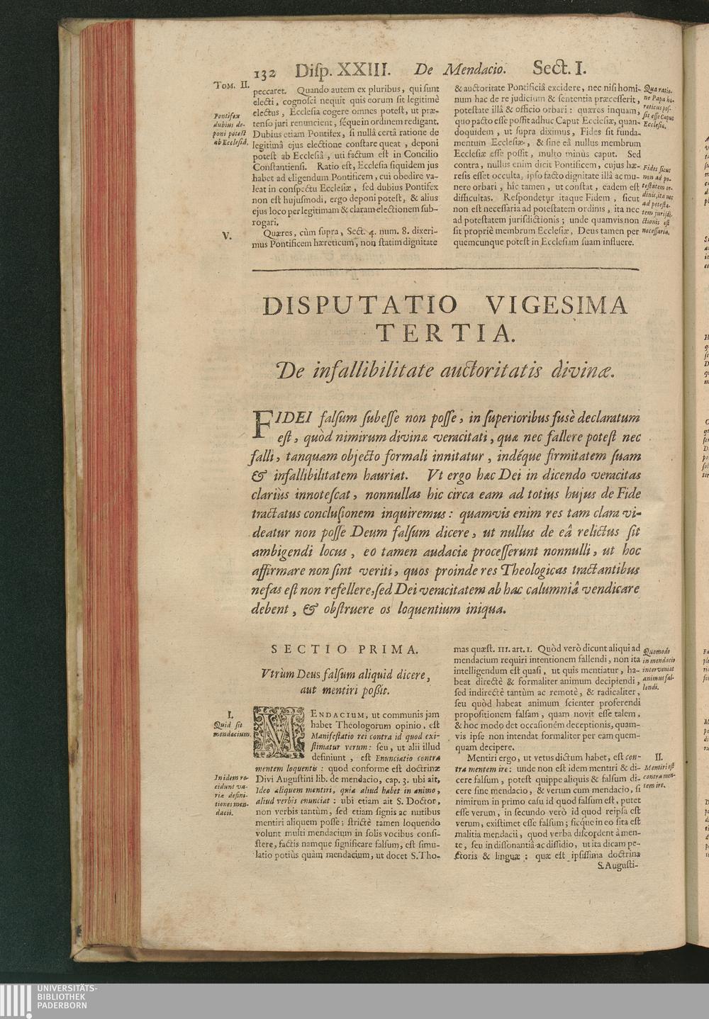 Disputatio XXIII. De infallibilitate auctoritatis divinæ.