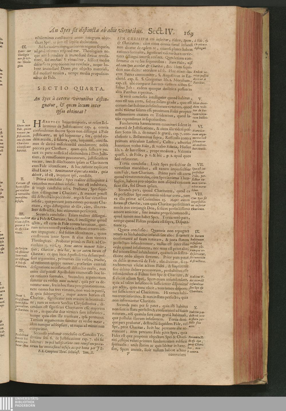 Sect. IV. An Spes à cæteris virtutibus distinguantur, & quem locum inter ipsas o[...]