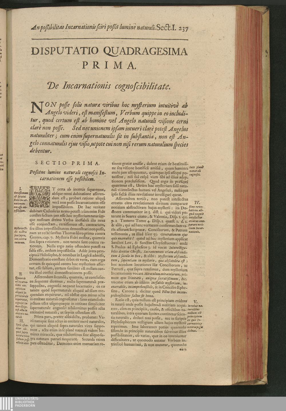 Sectio I. Poßitnè lumine naturali cognosci Incarnationem esse poßibilem.