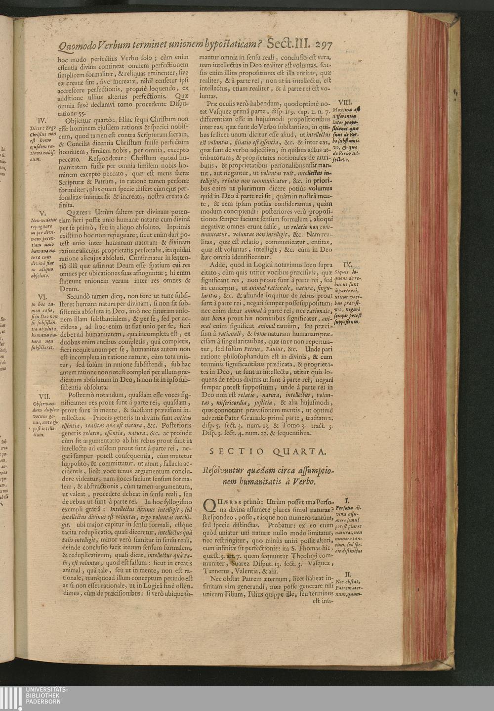 Sect. IV. Resolvuntur quædam circa assumptionem humanitatis à Verbo.