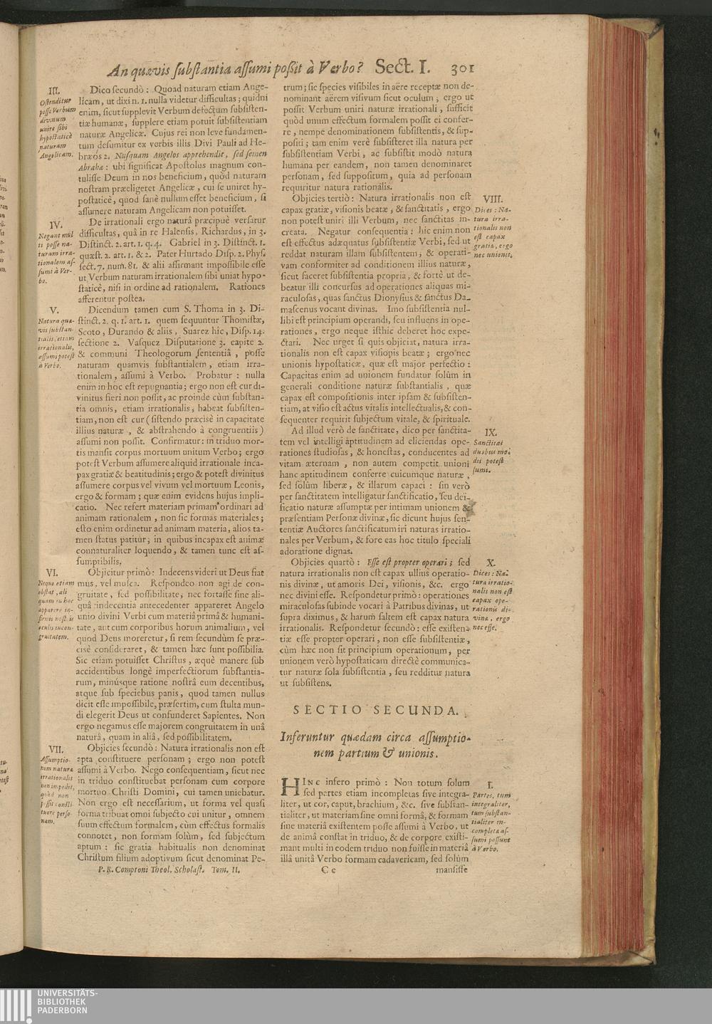 Sect. II. Inferuntur quædam circa assumptionem partium & unionis.