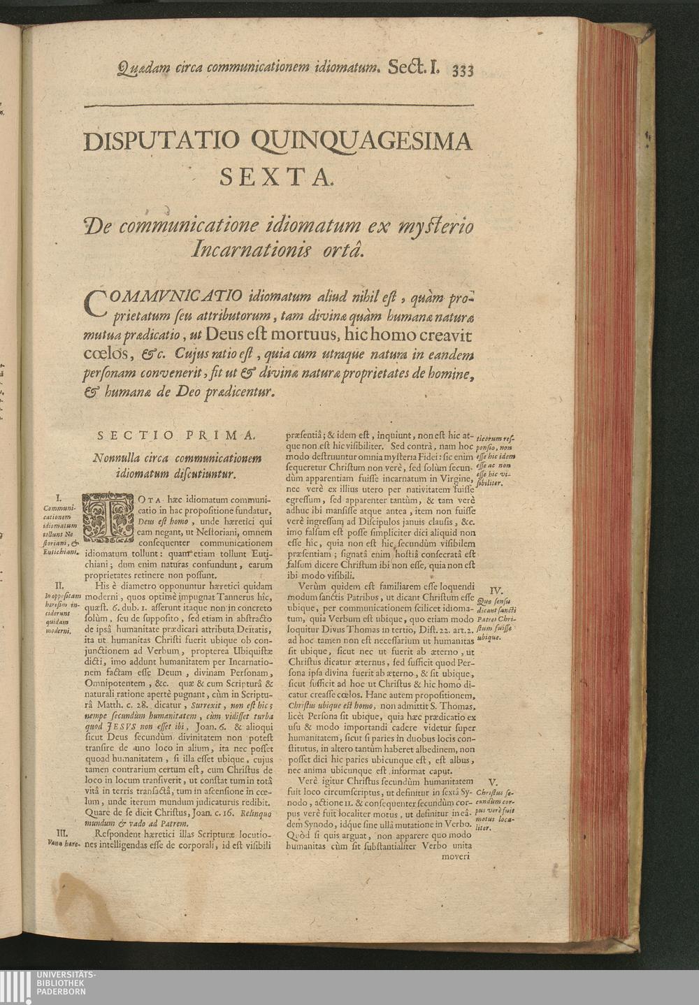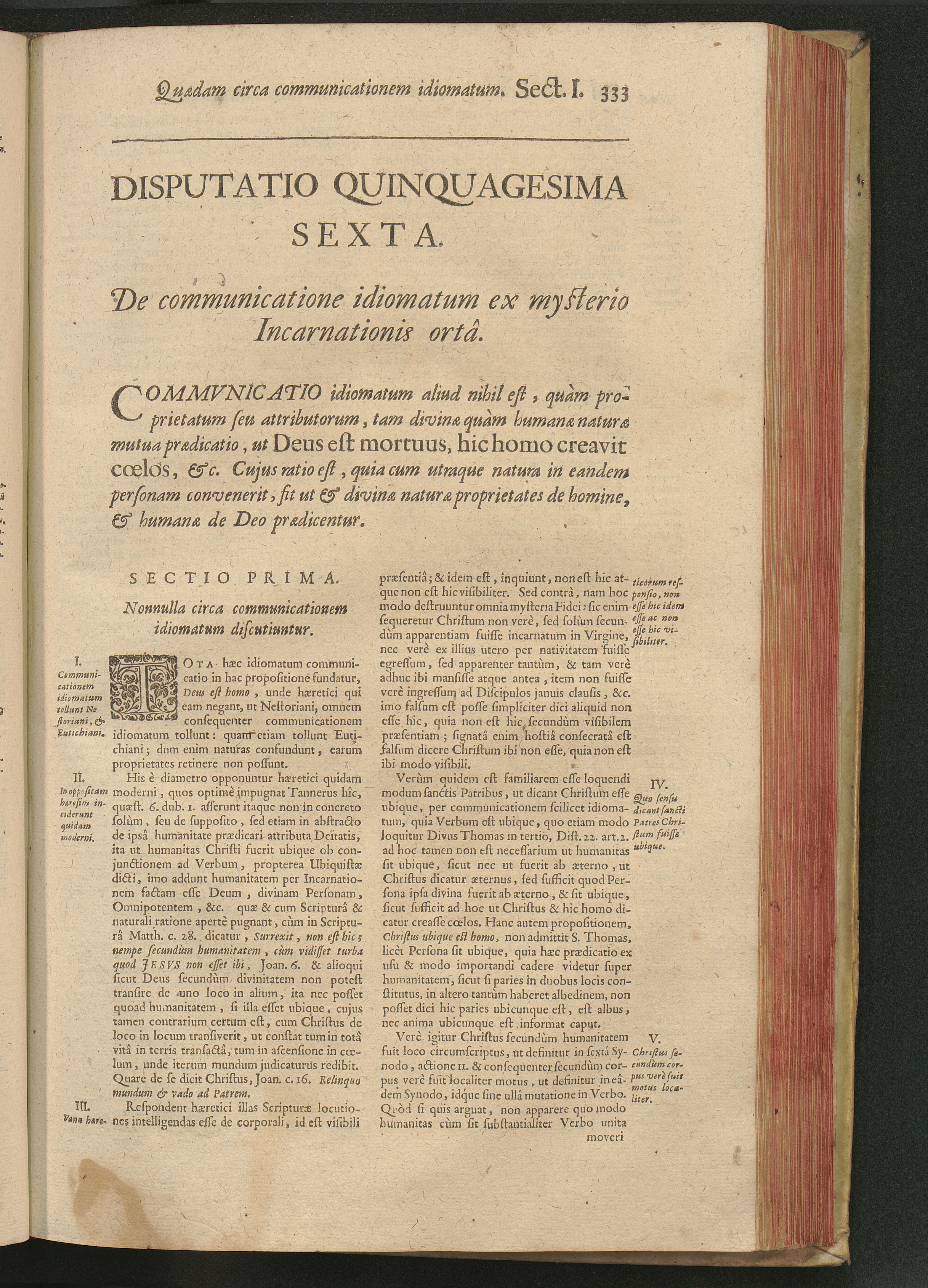 Dispvtatio LVI. De communicatione idiomatum ex mysterio Incarnationis orta.