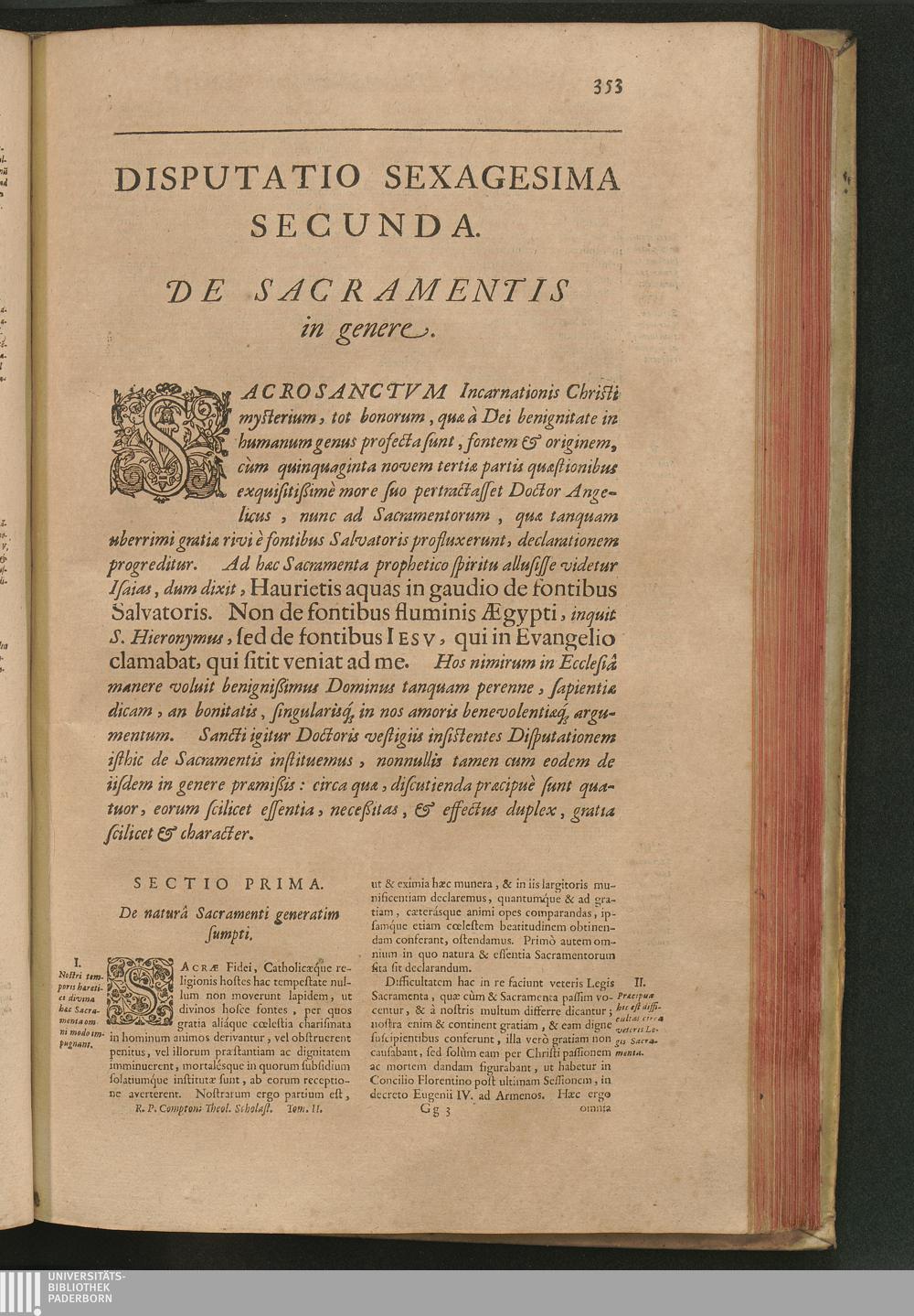 Sectio I. De natura Sacramenti generatim sumpti.
