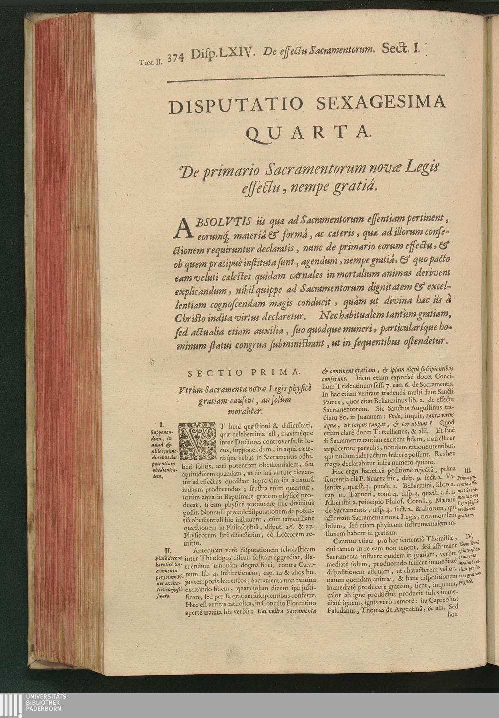 Disputatio LXIV. De primario Sacramentorum novæ Legis effectu, nempe gratiâ.
