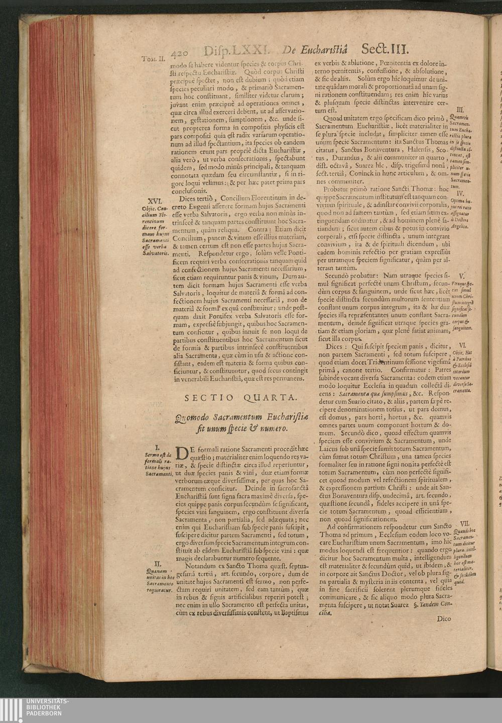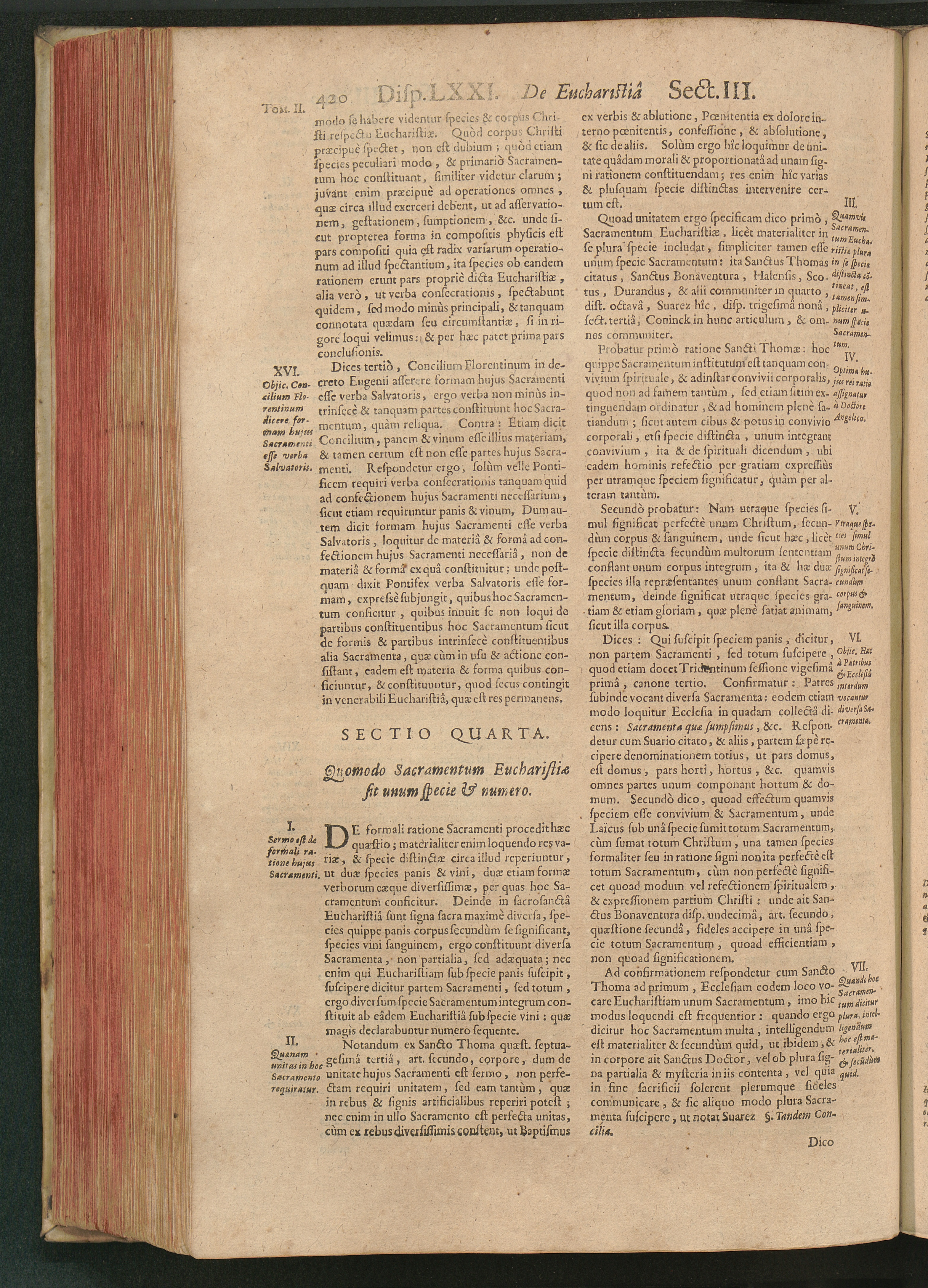 Sect. IV. Quomodo Sacramentum Eucharistiæ sit unum specie & numero.