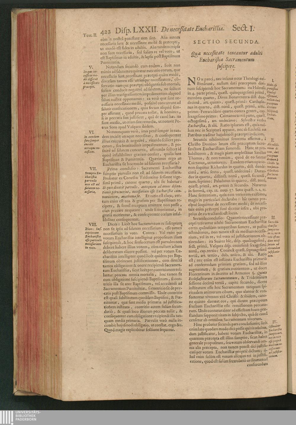 Disputatio LXXII. De neceßitate Sacramenti Eucharistiæ.
