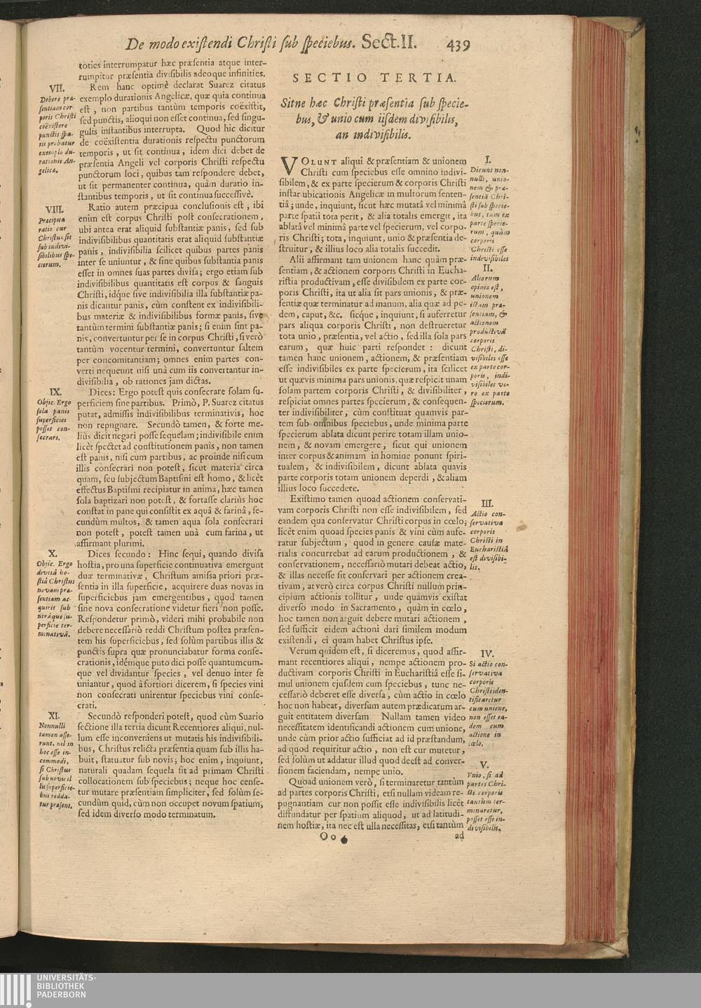 Sect. III. Sitnè hæc Christi præsentia sub speciebus, & unio cum iisdem divisibiles,[...]
